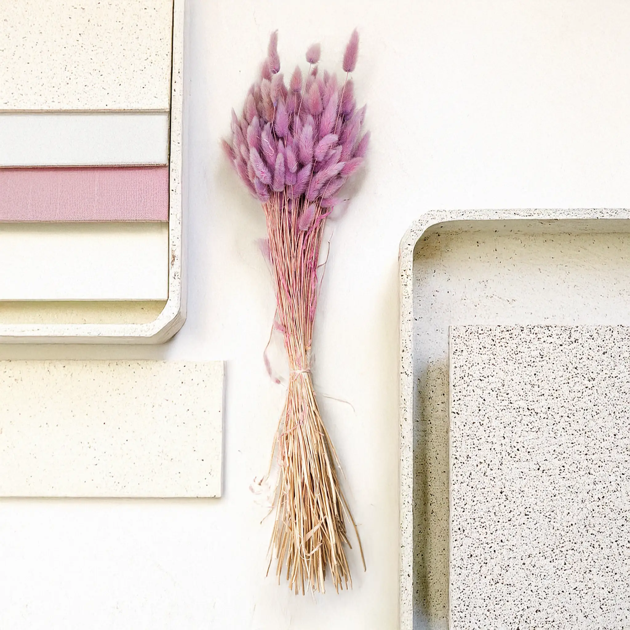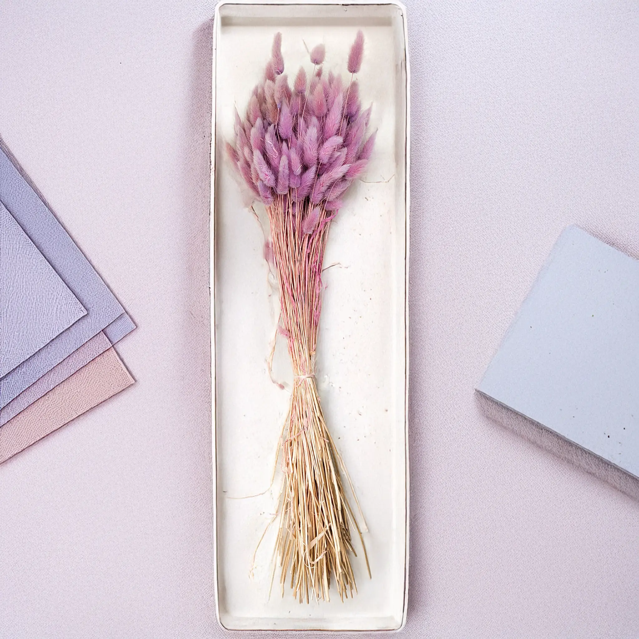 Wrzosowy suszony Lagurus (Dmuszek jajowaty) to elegancka i subtelna dekoracja, której kolor łączy delikatność fioletu z romantyzmem pastelowych tonów. Odcień wrzosowy symbolizuje spokój, intuicję i kobiecość – idealny do nastrojowych, wyciszających kompozycji florystycznych. Jego puszyste kłosy wnoszą lekkość i poetycki charakter do wnętrz oraz dekoracji ślubnych.