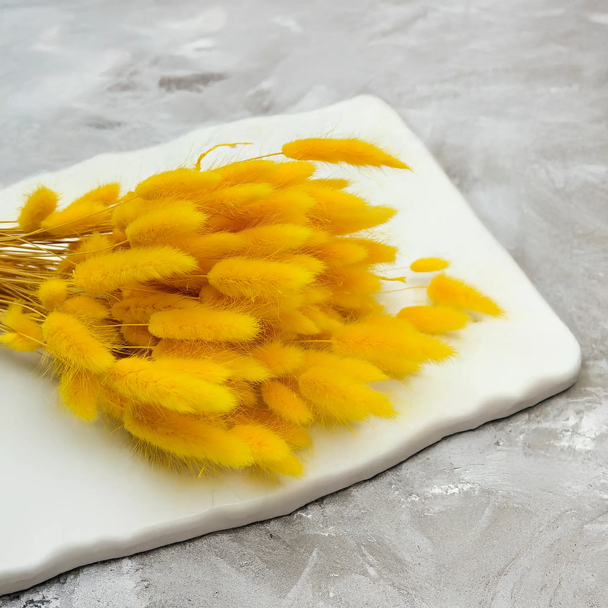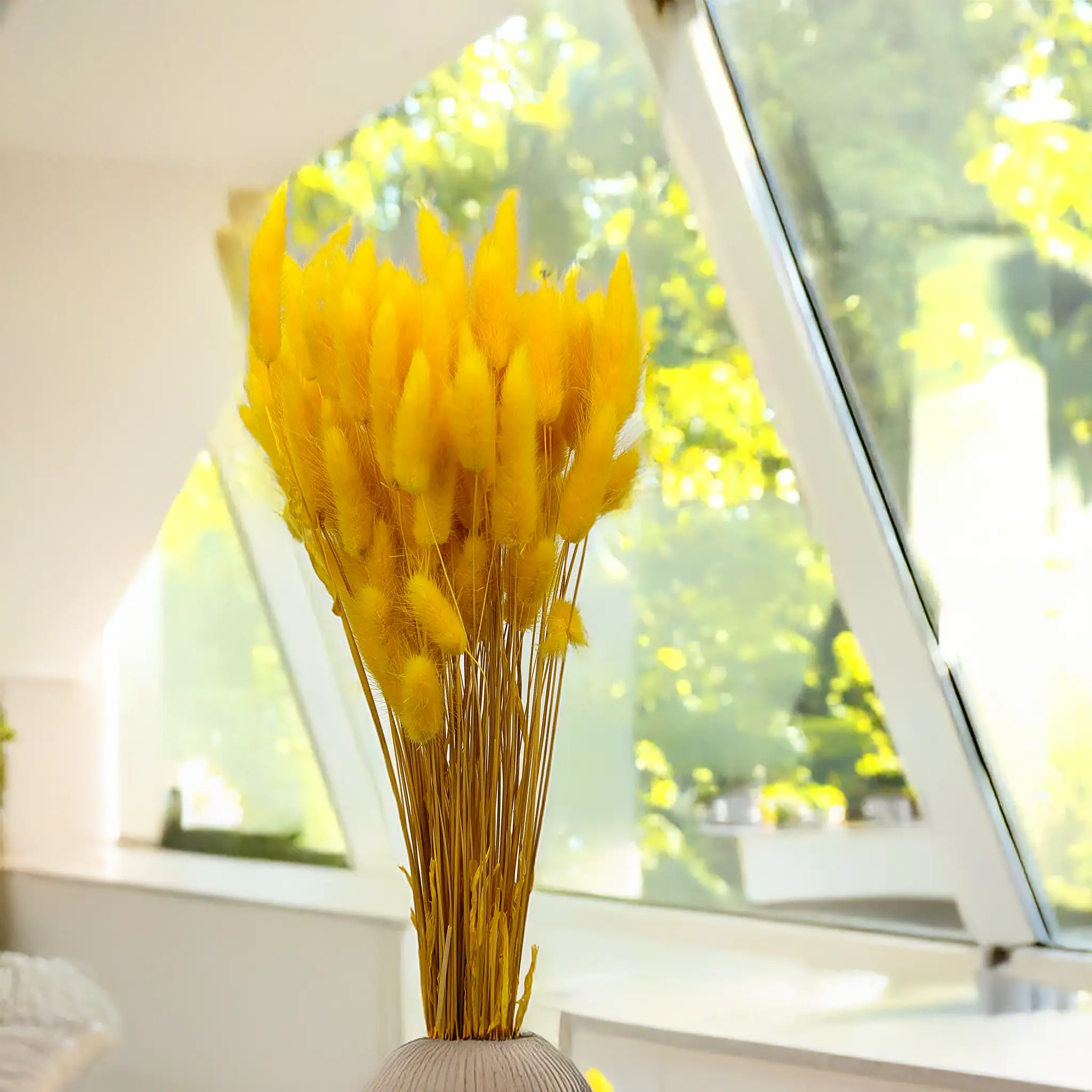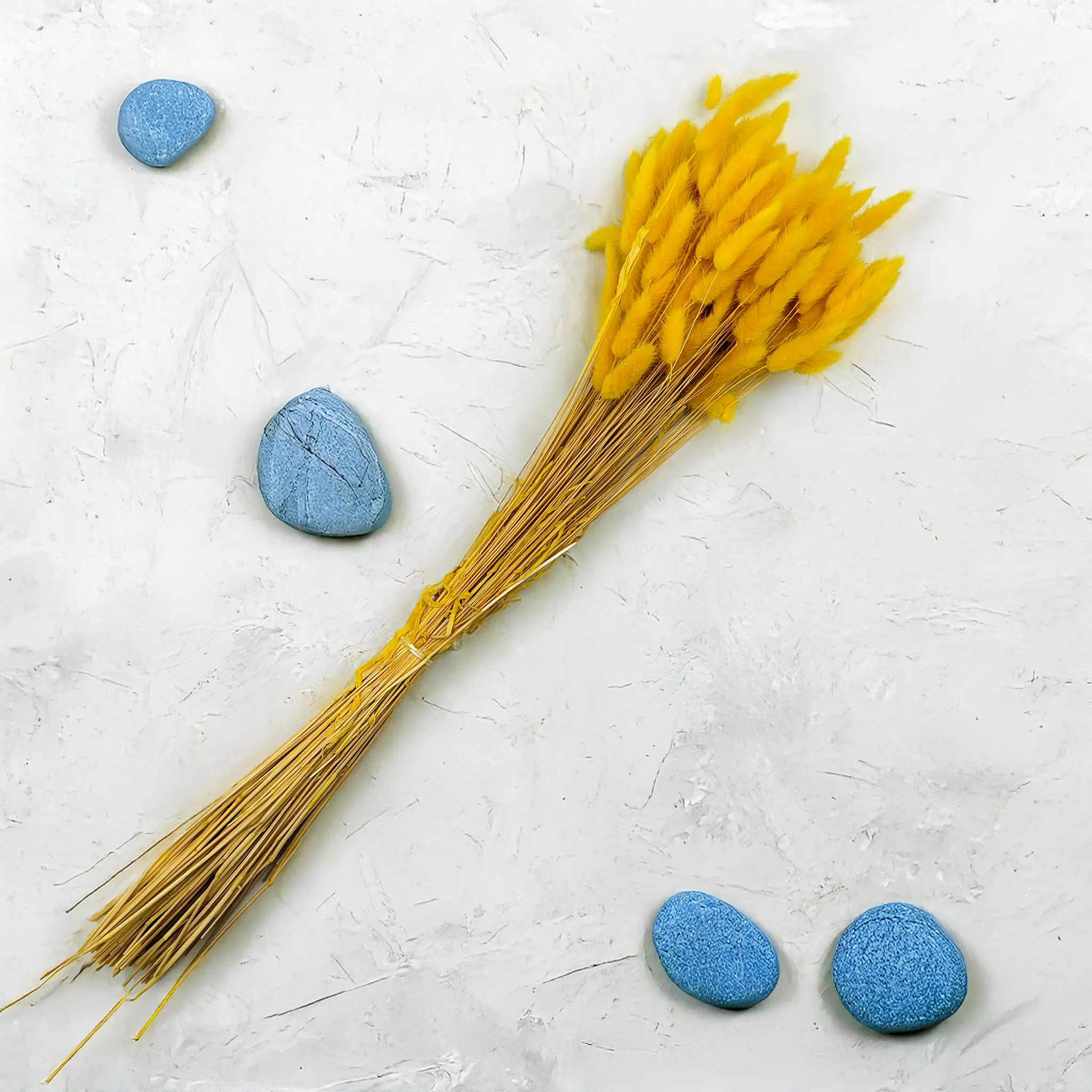 Żółty Lagurus nie tylko ożywia przestrzeń, ale także utrzymuje swoją świeżość i kształt przez wiele miesięcy – bez potrzeby pielęgnacji. To trwała, naturalna ozdoba gotowa do użycia od razu po otrzymaniu.