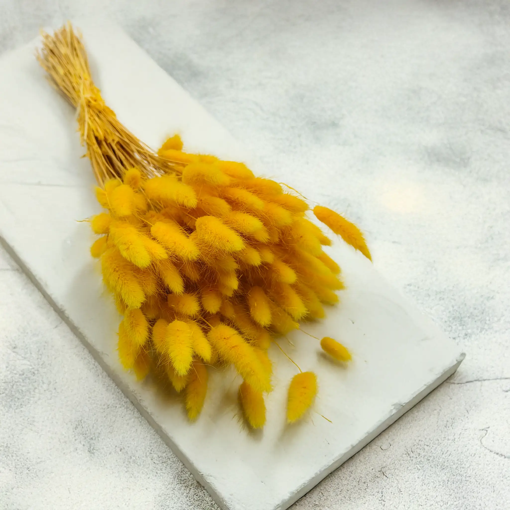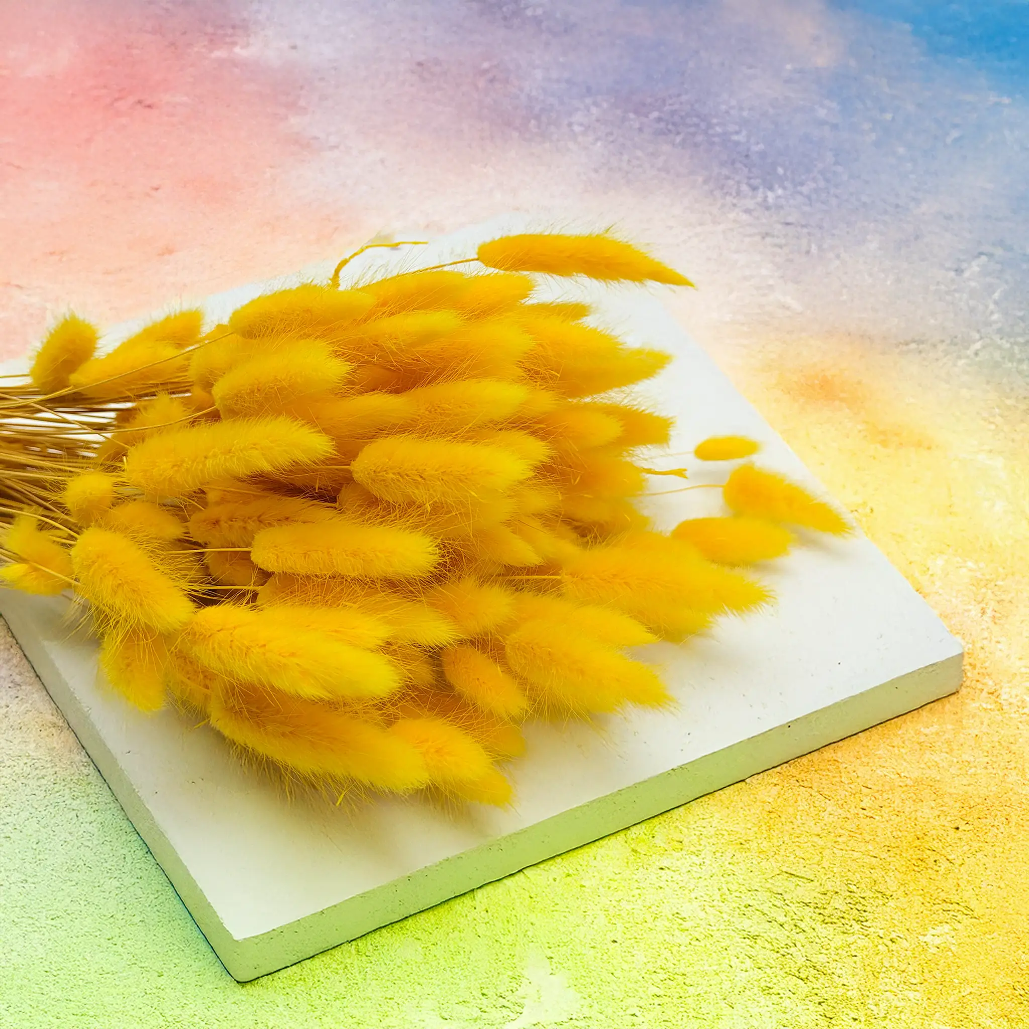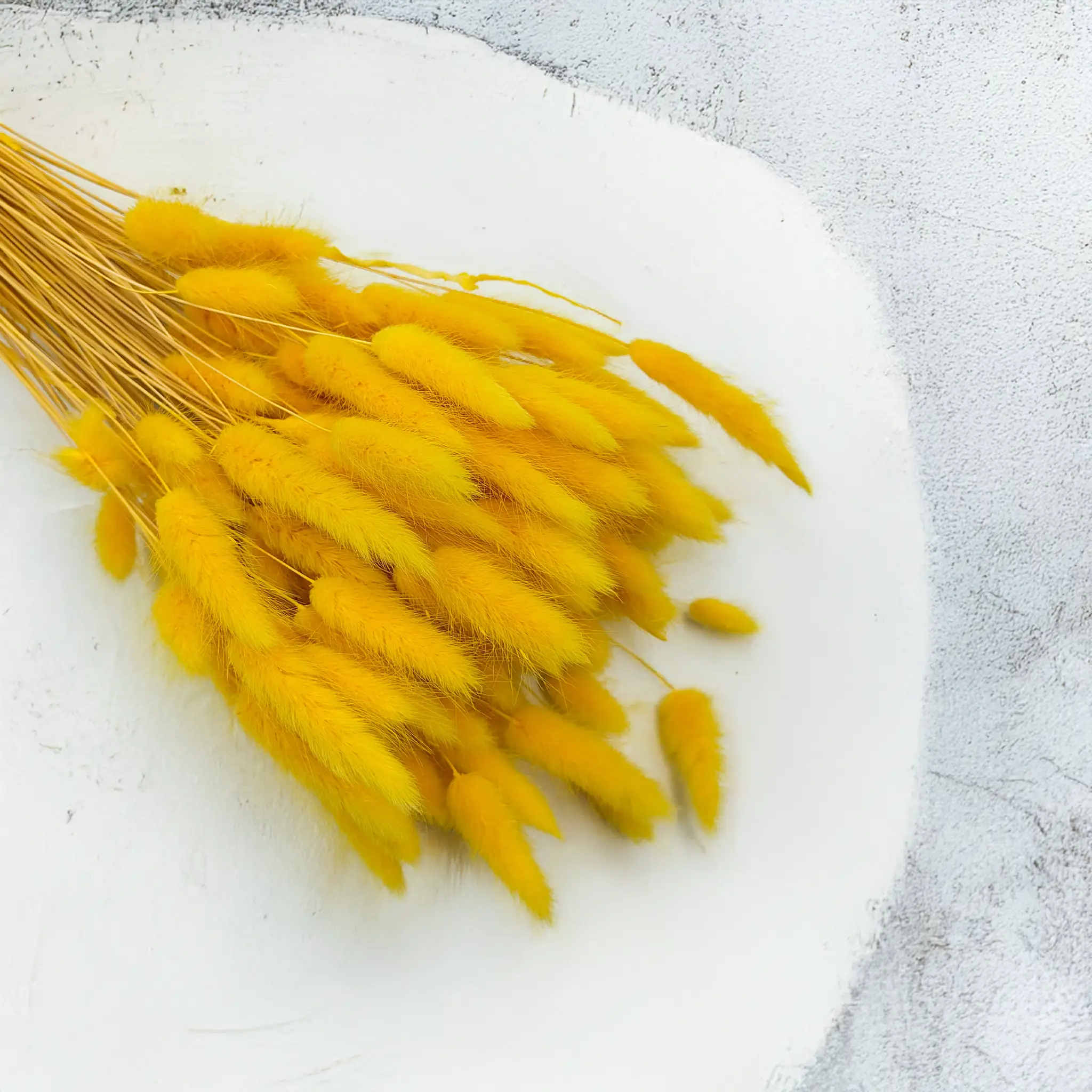 Żółty Lagurus nie tylko ożywia przestrzeń, ale także utrzymuje swoją świeżość i kształt przez wiele miesięcy – bez potrzeby pielęgnacji. To trwała, naturalna ozdoba gotowa do użycia od razu po otrzymaniu.