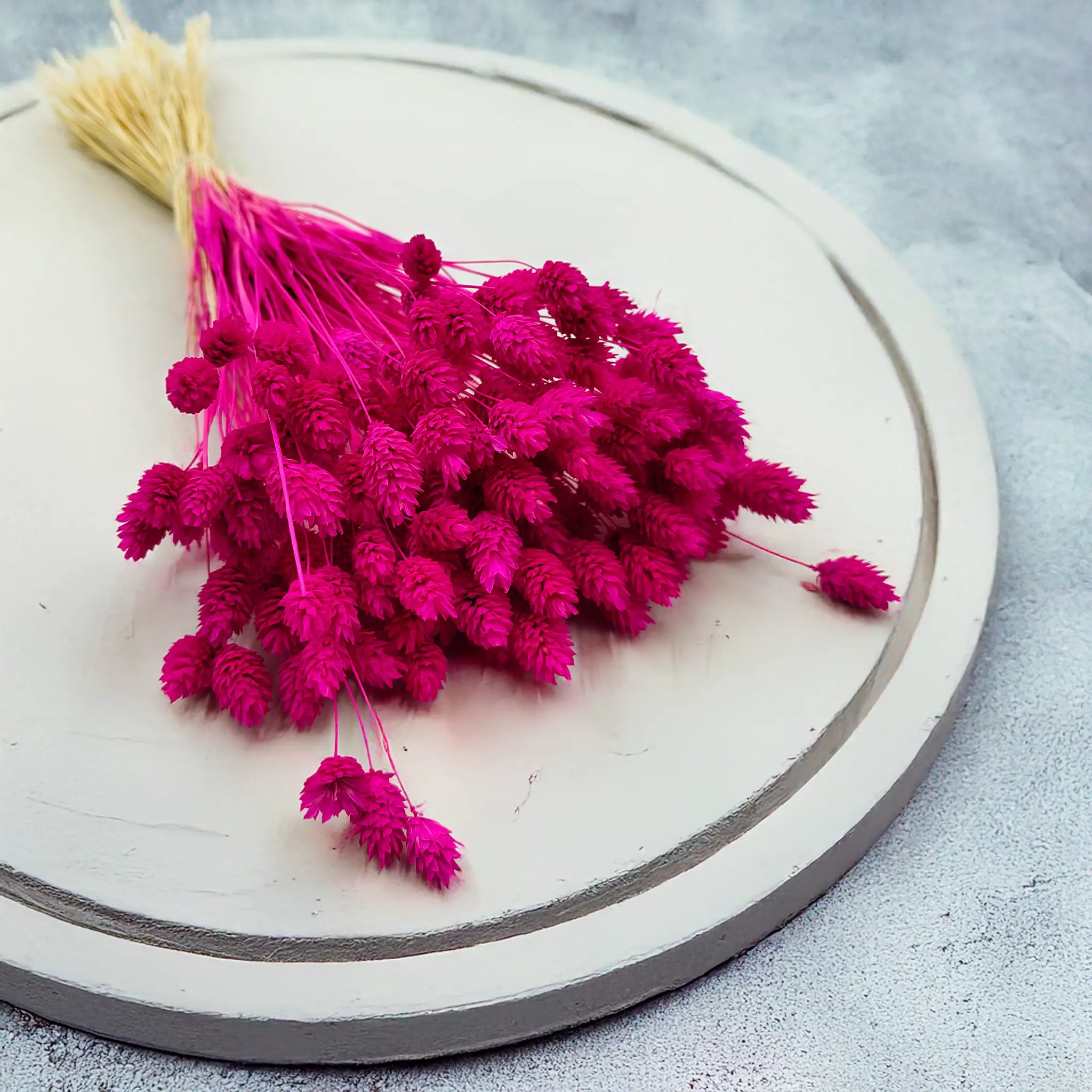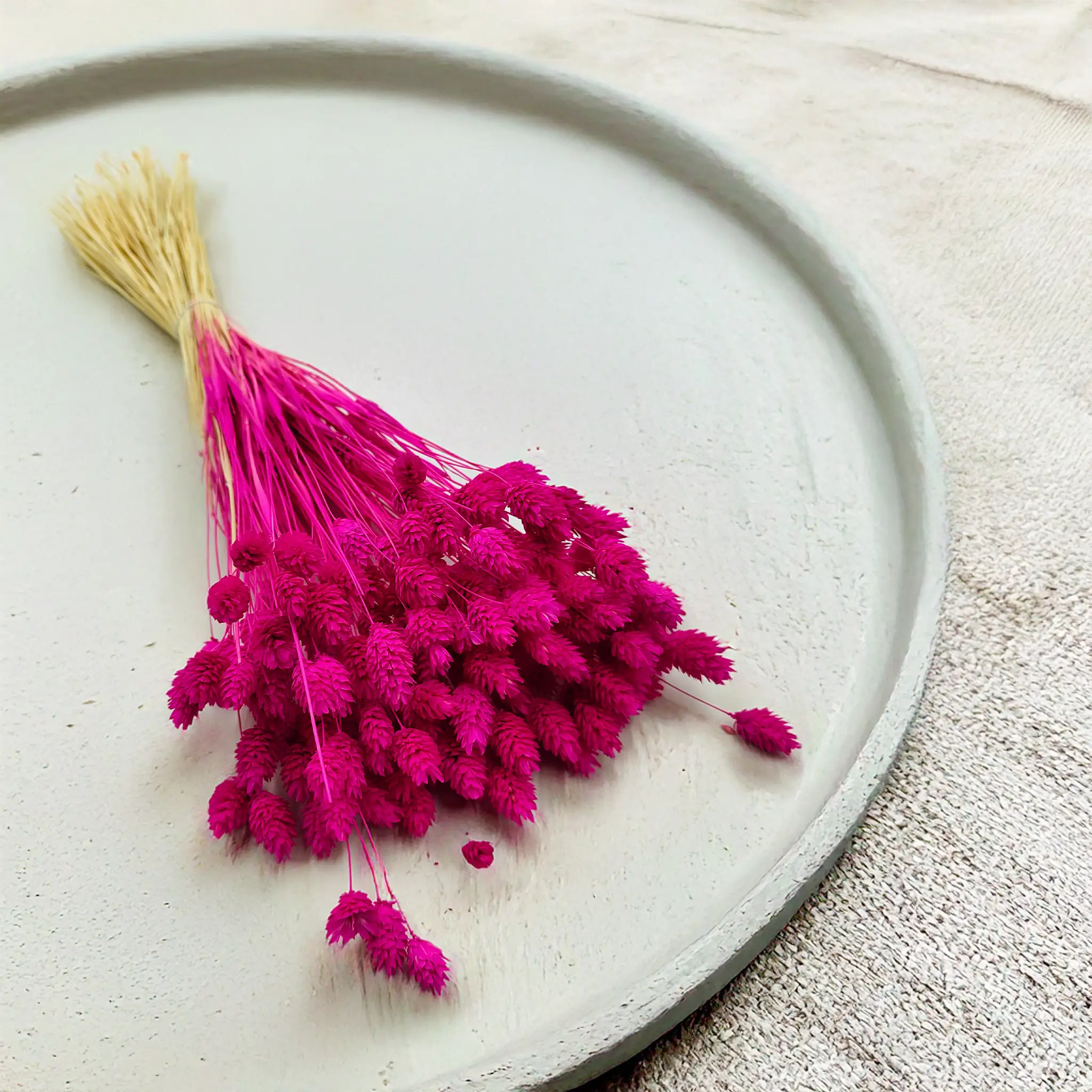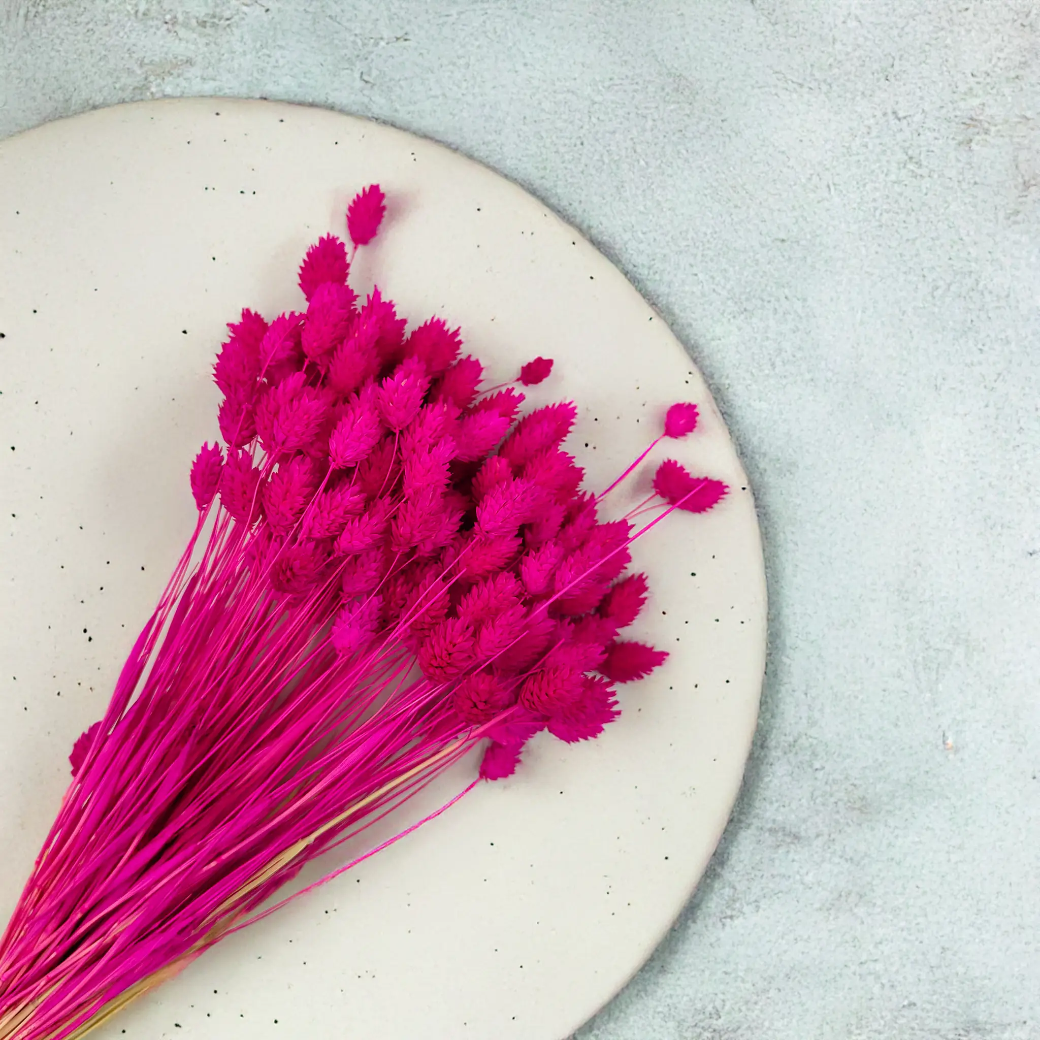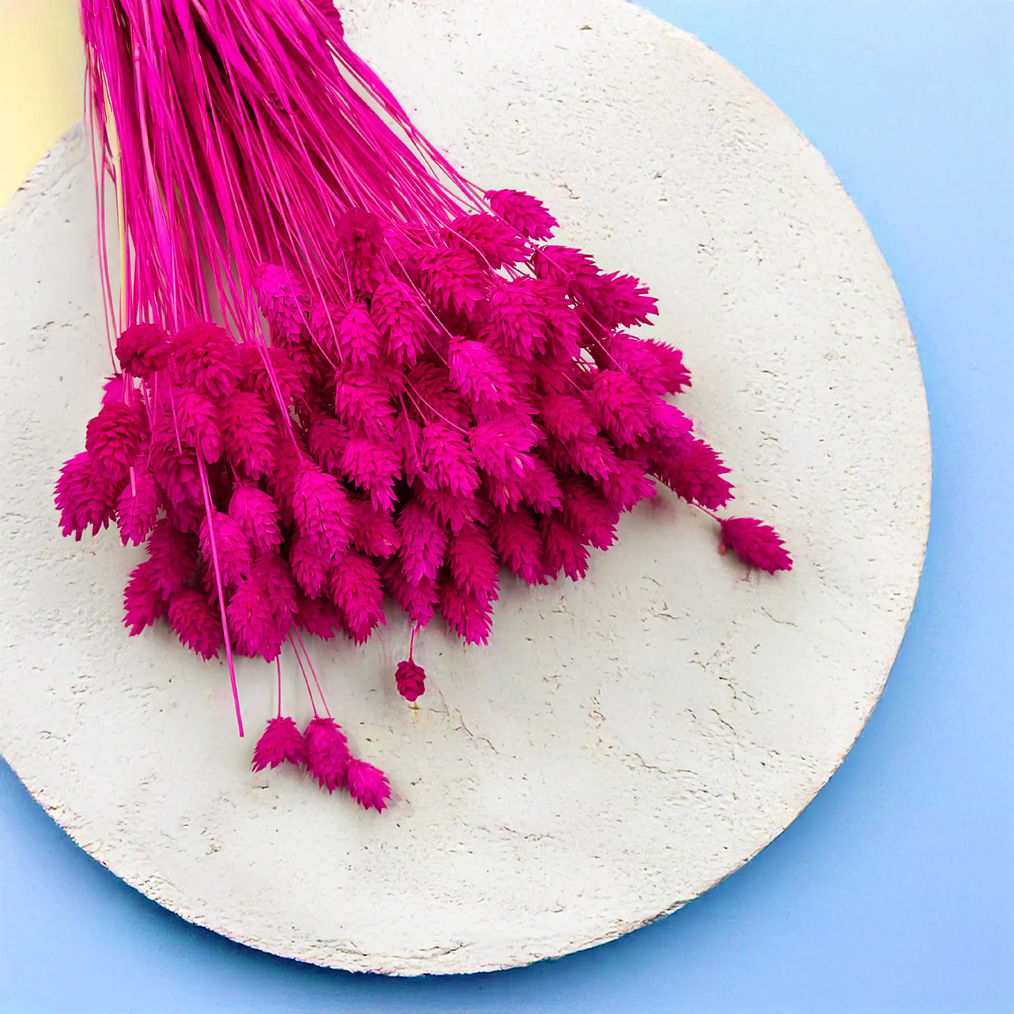 Phalaris Amarantowy to wyrazista, pełna charakteru odmiana suszonej mozgi kanaryjskiej, barwiona na głęboki odcień różu z nutą fuksji i czerwieni. Amarantowy to kolor pasji, ekspresji i kreatywności – idealny do dekoracji, które mają przyciągać uwagę i wprowadzać dynamiczny nastrój. Jego struktura oraz trwałość sprawiają, że to doskonały wybór zarówno do florystyki, jak i nowoczesnych aranżacji wnętrz czy sesji zdjęciowych.