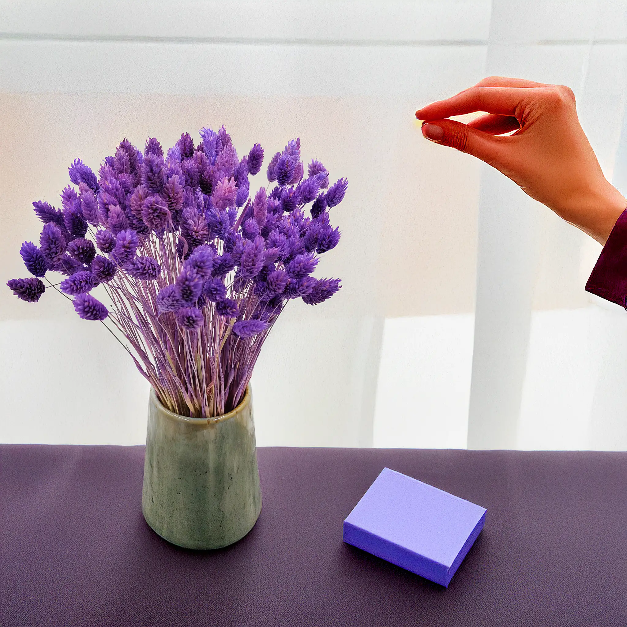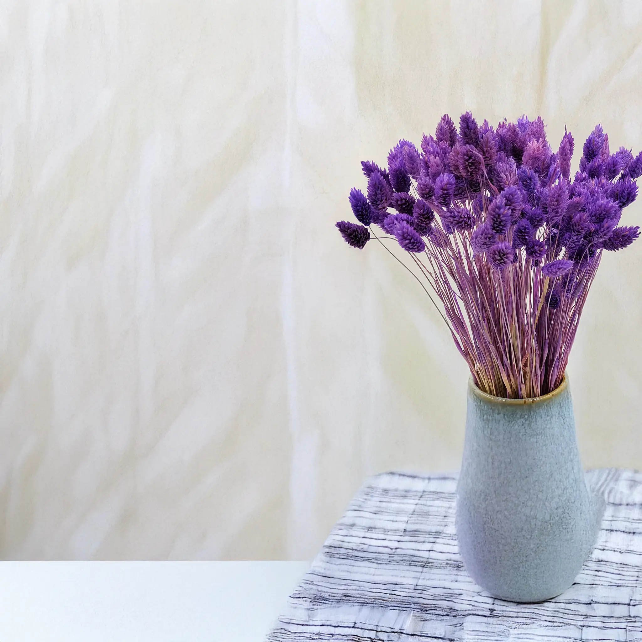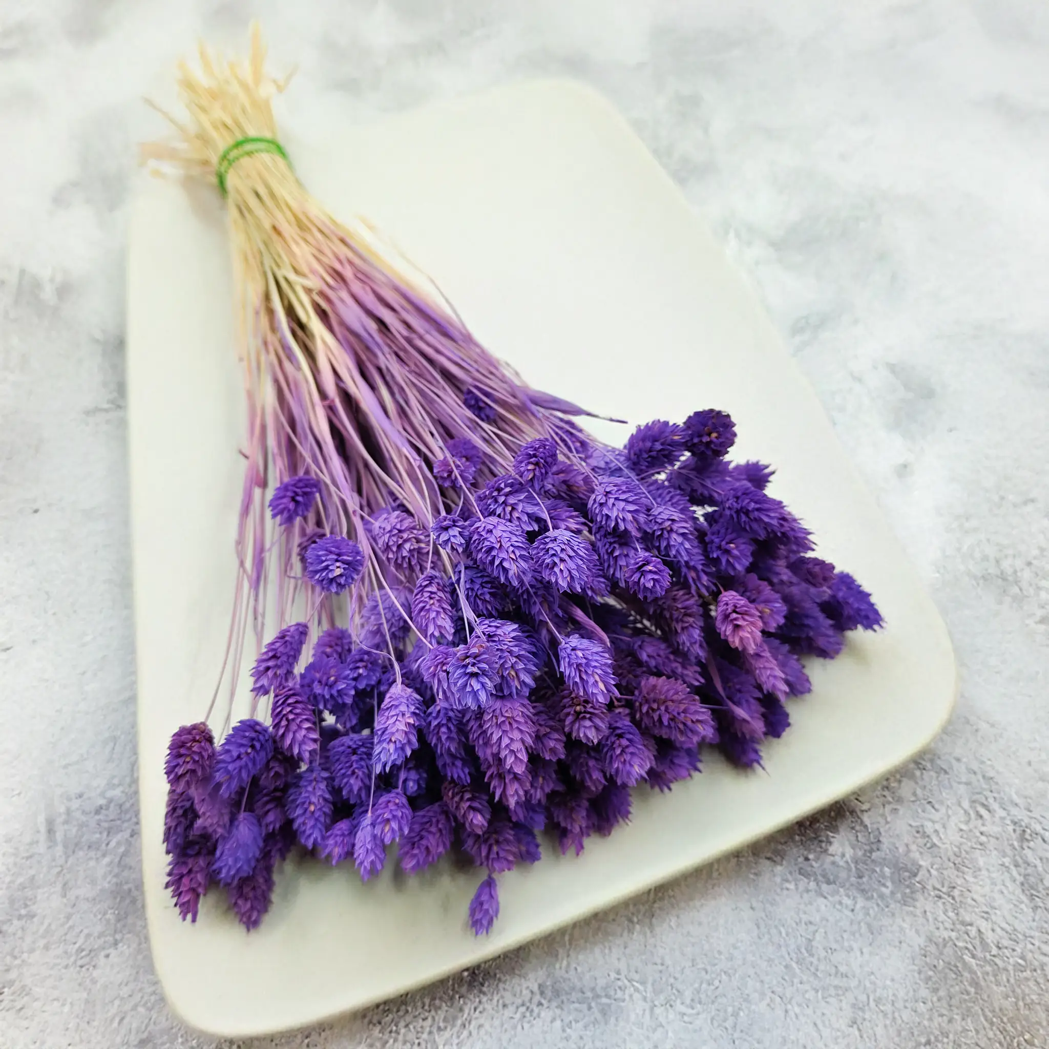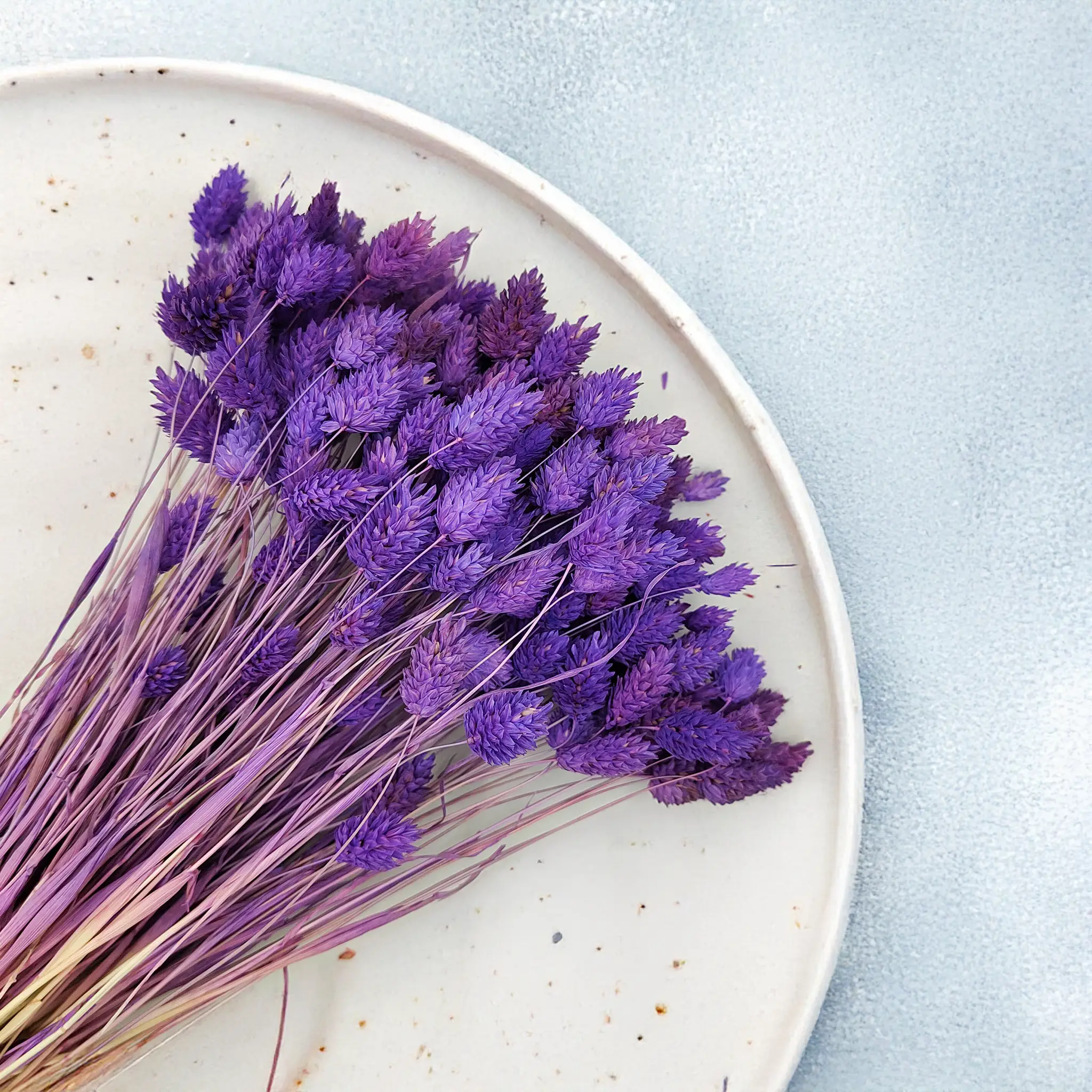 Phalaris Fioletowy to dekoracyjna odmiana suszonej mozgi kanaryjskiej w intensywnym, głębokim odcieniu fioletu. Ta szlachetna barwa symbolizuje luksus, duchowość i kreatywność, czyniąc go doskonałym dodatkiem do eleganckich, artystycznych i ekstrawaganckich aranżacji. Zachwyca trwałością i strukturą, która zachowana została dzięki profesjonalnemu procesowi suszenia.