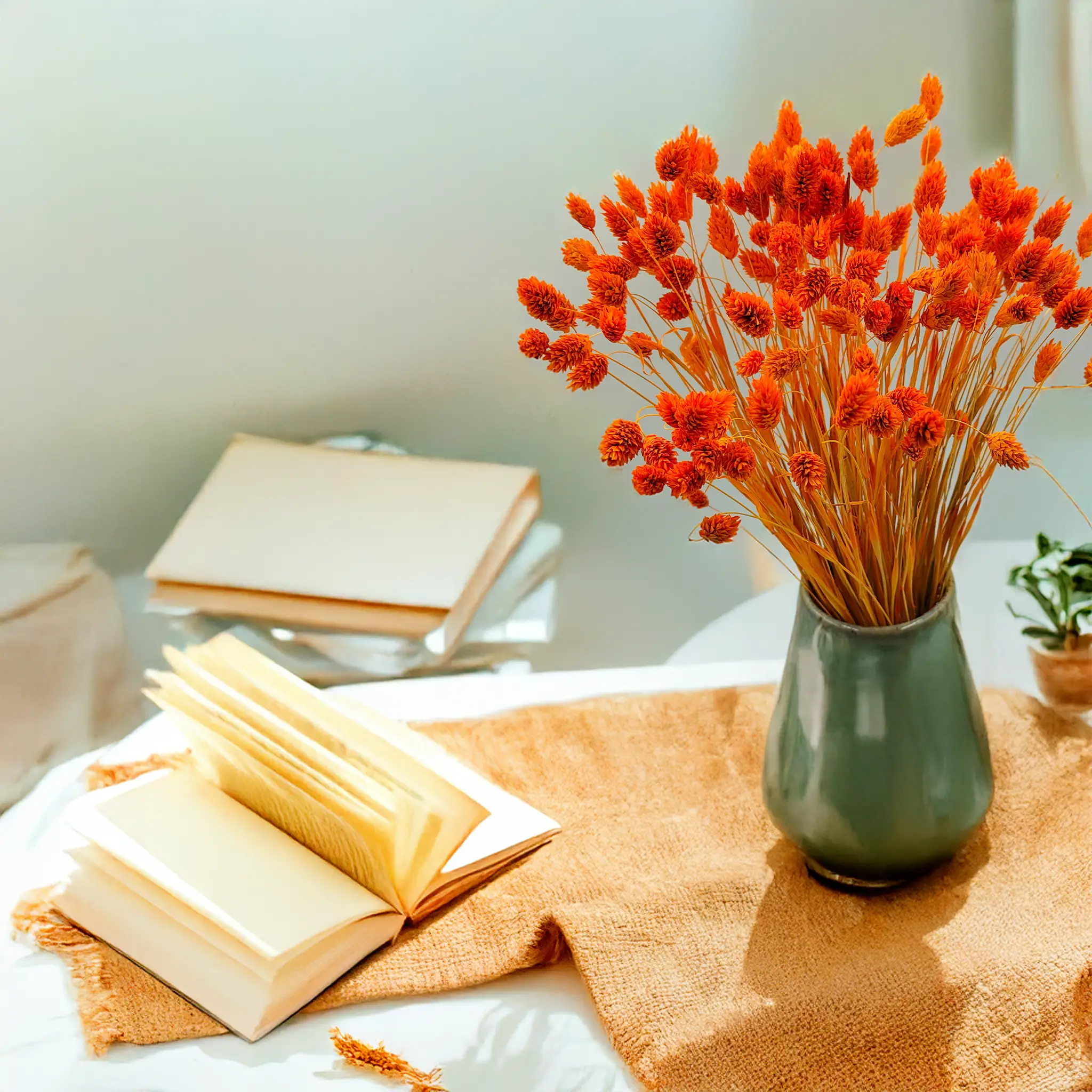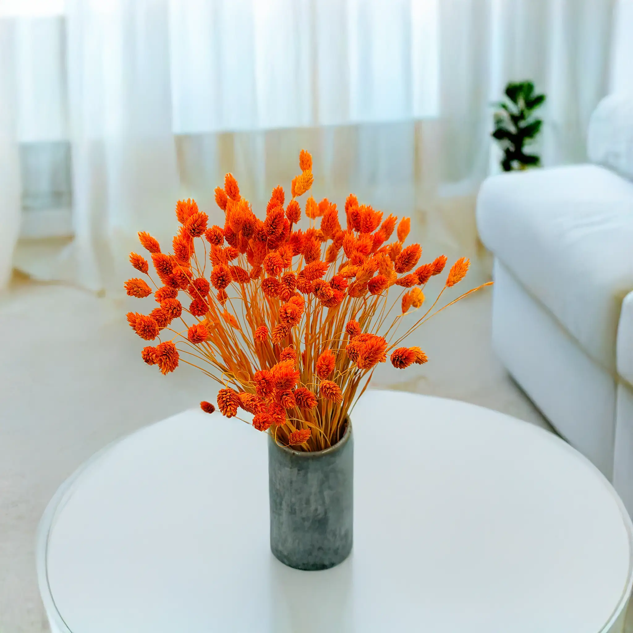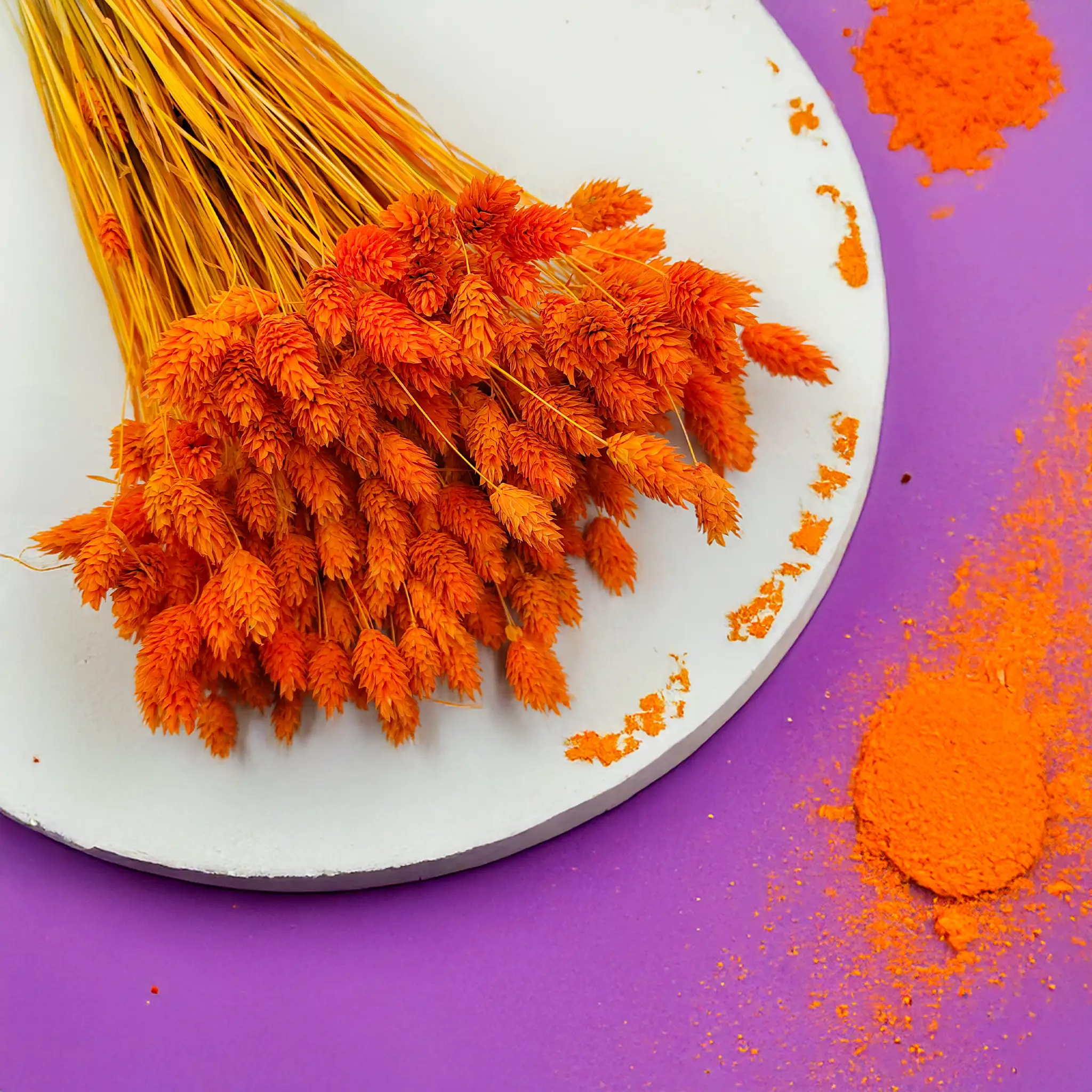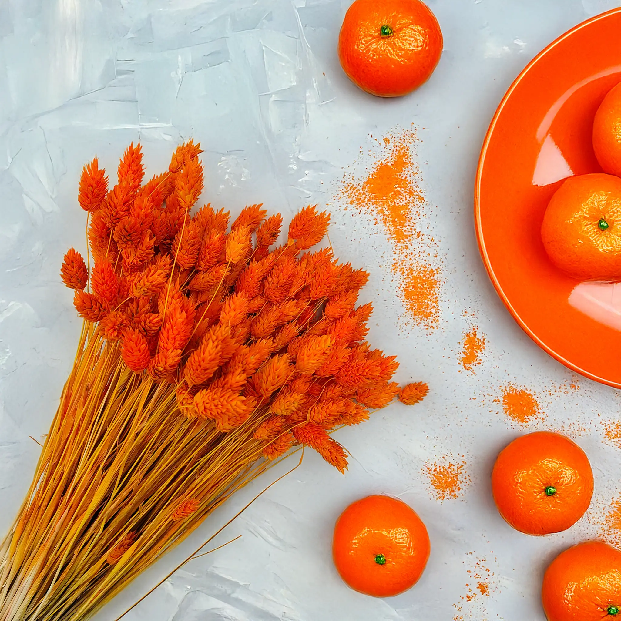 Phalaris Mandarynkowy to efektownie barwiona wersja mozgi kanaryjskiej (Phalaris Canariensis) – trawy ozdobnej pochodzącej z rejonów śródziemnomorskich i Wysp Kanaryjskich. Roślina ta jest znana z gęstych, kłosowatych kwiatostanów, które po wysuszeniu zachowują trwałość i strukturę przez wiele miesięcy. W tym wydaniu przyciąga wzrok wyjątkowo ciepłym i nasyconym odcieniem mandarynkowym.