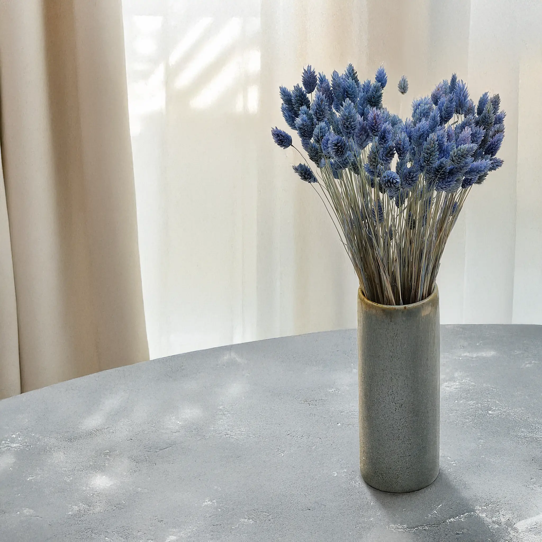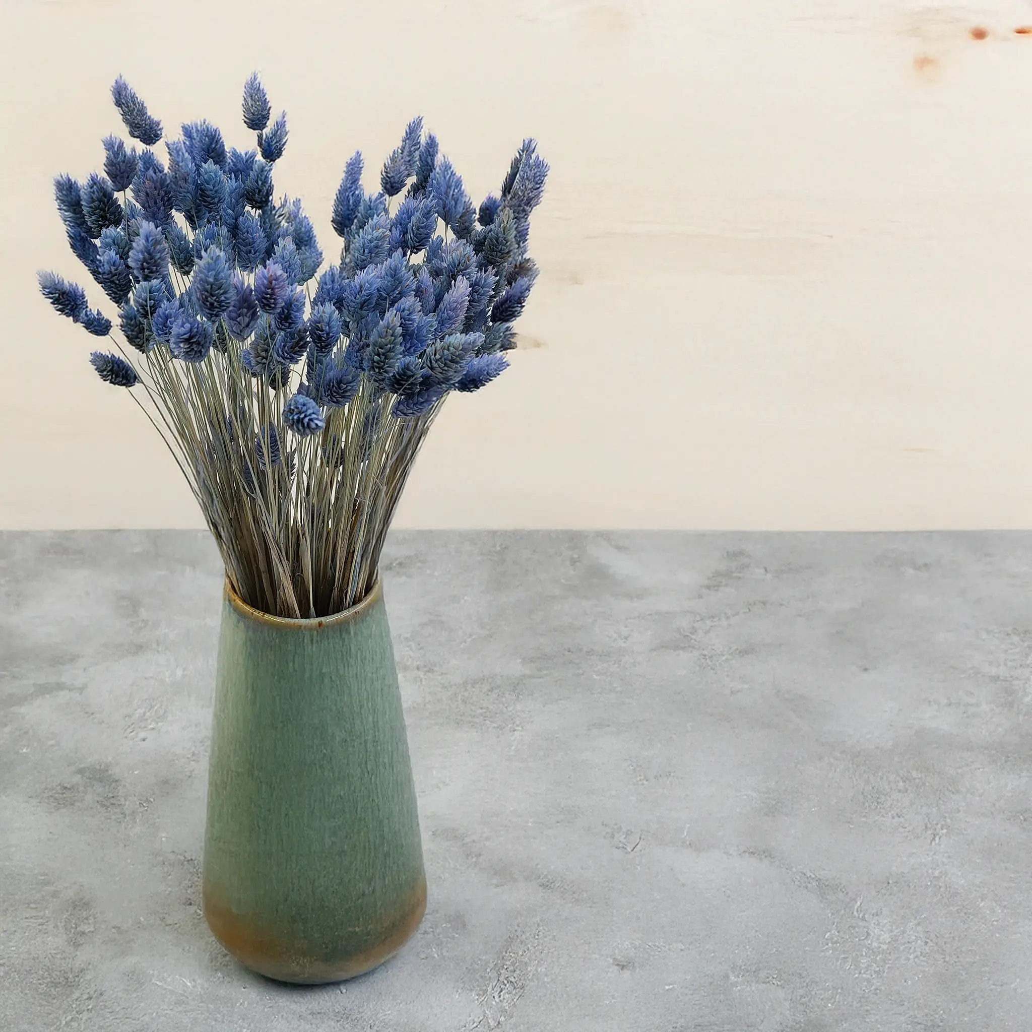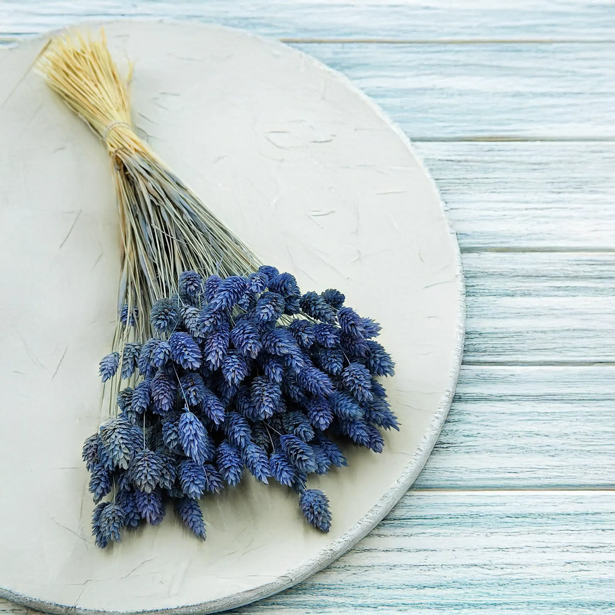 Phalaris Błękitny to starannie wysuszona mozga kanaryjska w pastelowym, błękitnym odcieniu, który wnosi do aranżacji świeżość, spokój i lekkość. Kolor inspirowany niebem i wodą symbolizuje harmonię oraz kreatywność, doskonale wpisując się w klimat nowoczesnych i romantycznych dekoracji.