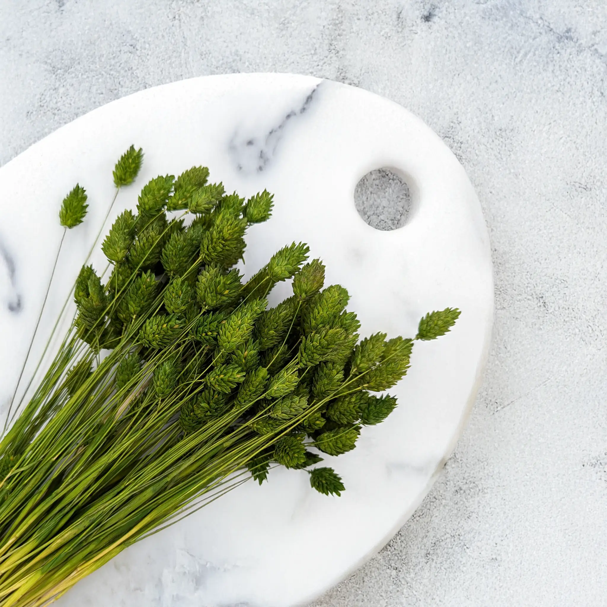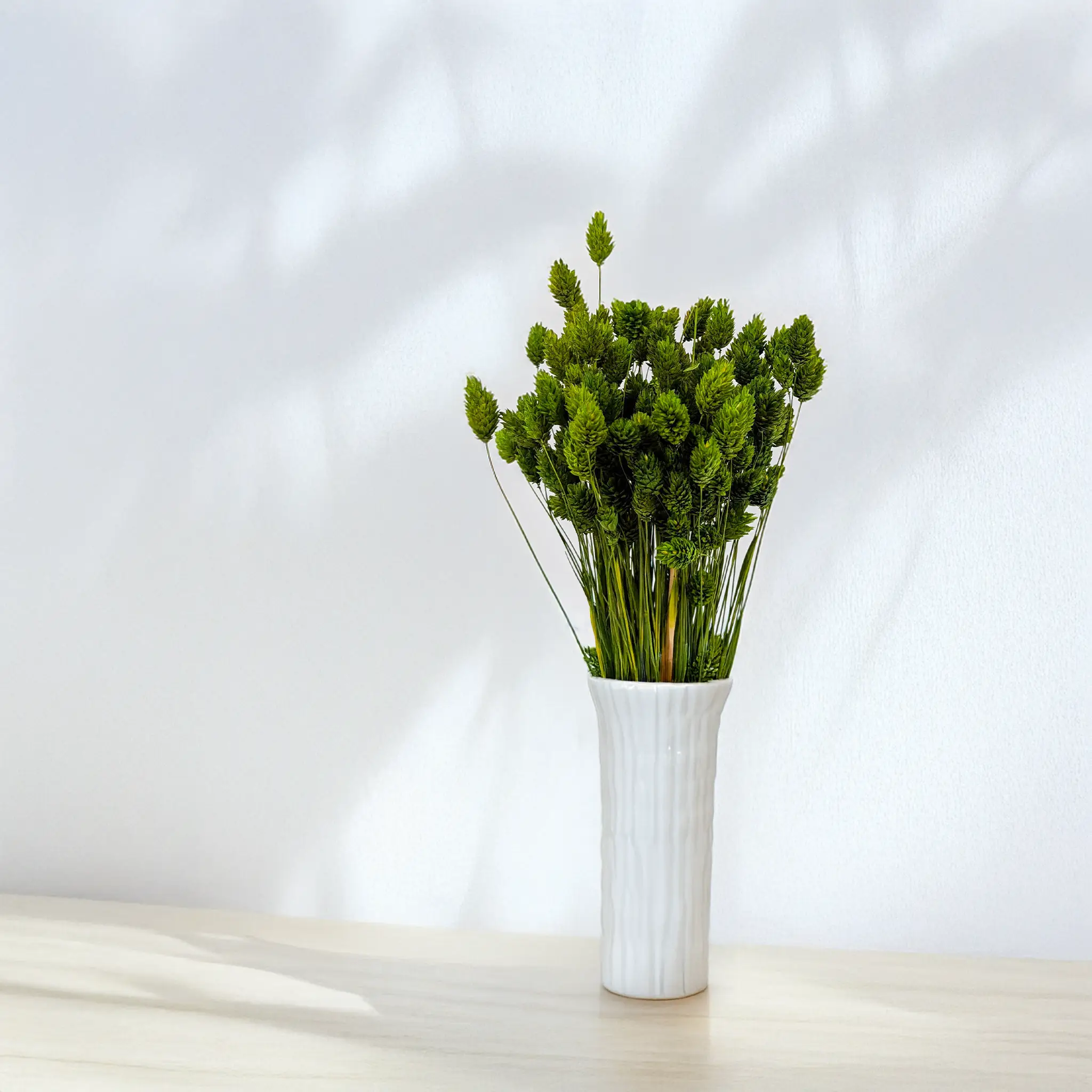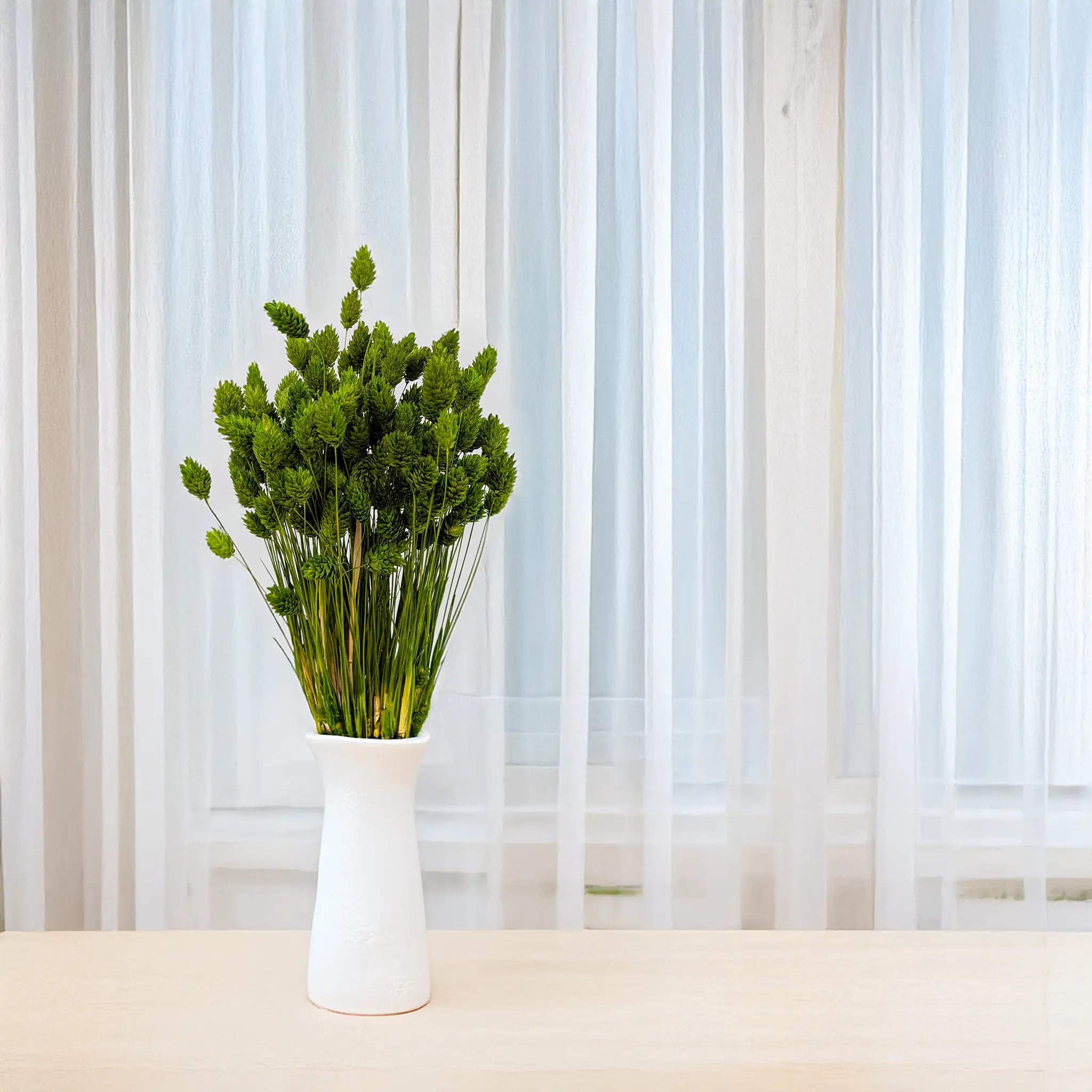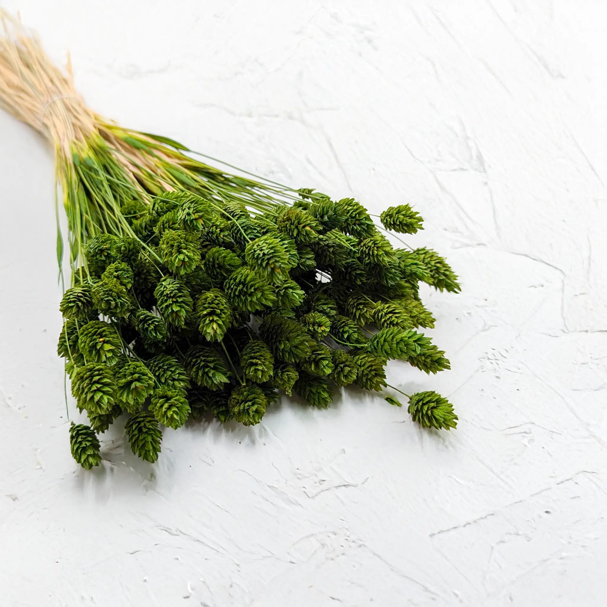 Phalaris Oliwkowy to stylowa i naturalna wersja mozgi kanaryjskiej w stonowanym odcieniu zieleni inspirowanym śródziemnomorską przyrodą. Jego barwa symbolizuje spokój, równowagę i harmonię, co czyni go doskonałym wyborem do kompozycji rustykalnych, eko i japandi. Kłosy są zwarte, a dzięki procesowi suszenia zachowują swój kształt przez długi czas.
