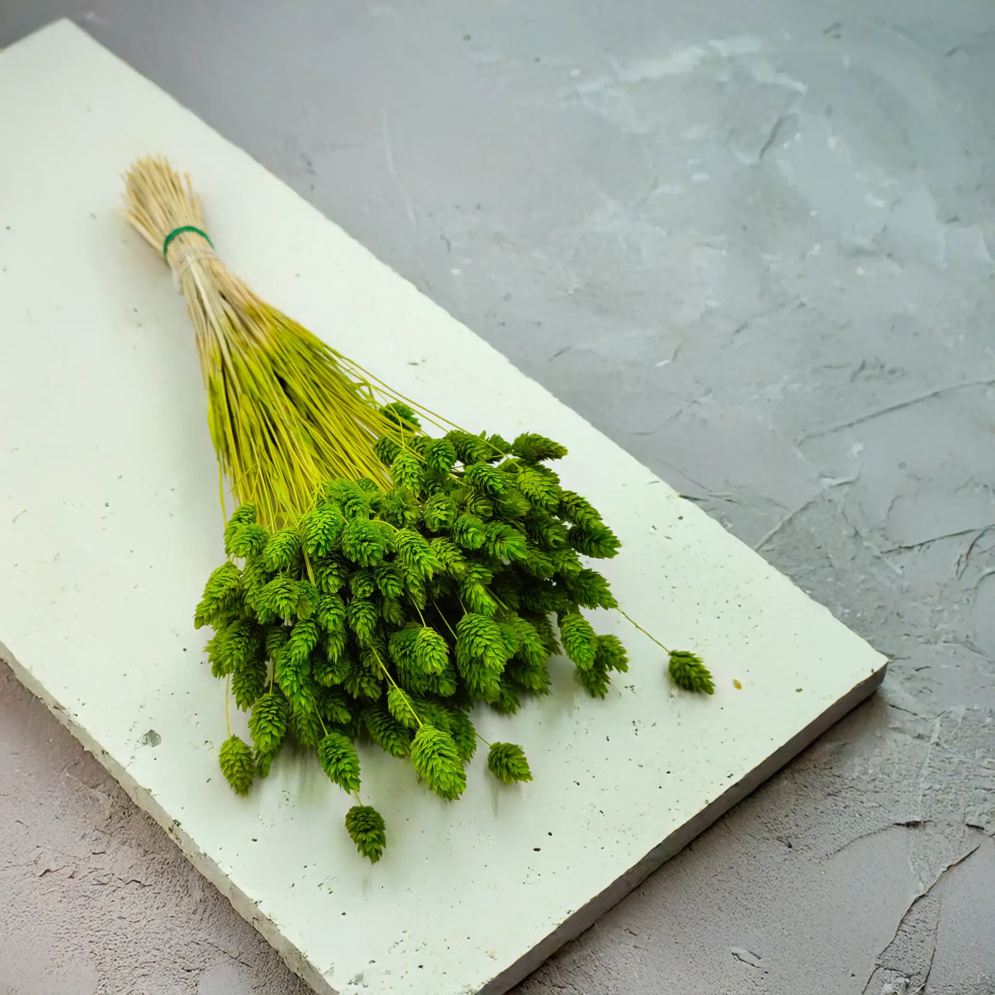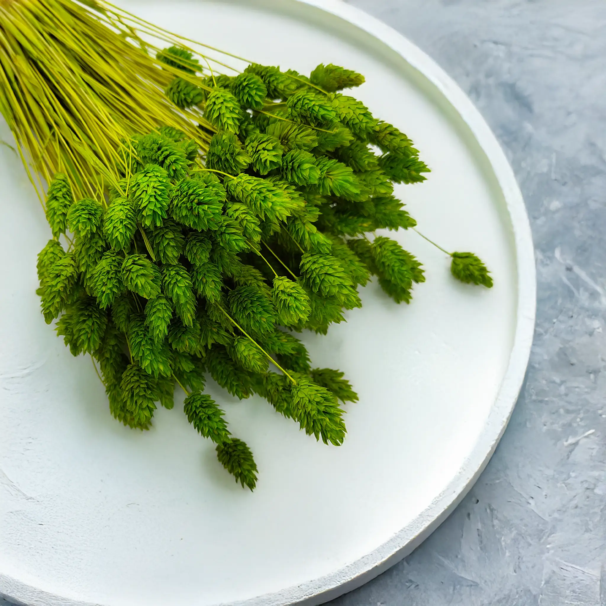 Phalaris Seledynowy to delikatna i elegancka wersja mozgi kanaryjskiej, barwionej na subtelny odcień pastelowej zieleni z domieszką mięty. Ten wyjątkowy kolor symbolizuje harmonię, spokój i odnowę – doskonale wpisując się w styl dekoracji skandynawskich, romantycznych i rustykalnych. Susz zachowuje naturalną strukturę, a jego subtelność dodaje aranżacjom lekkości i klasy.