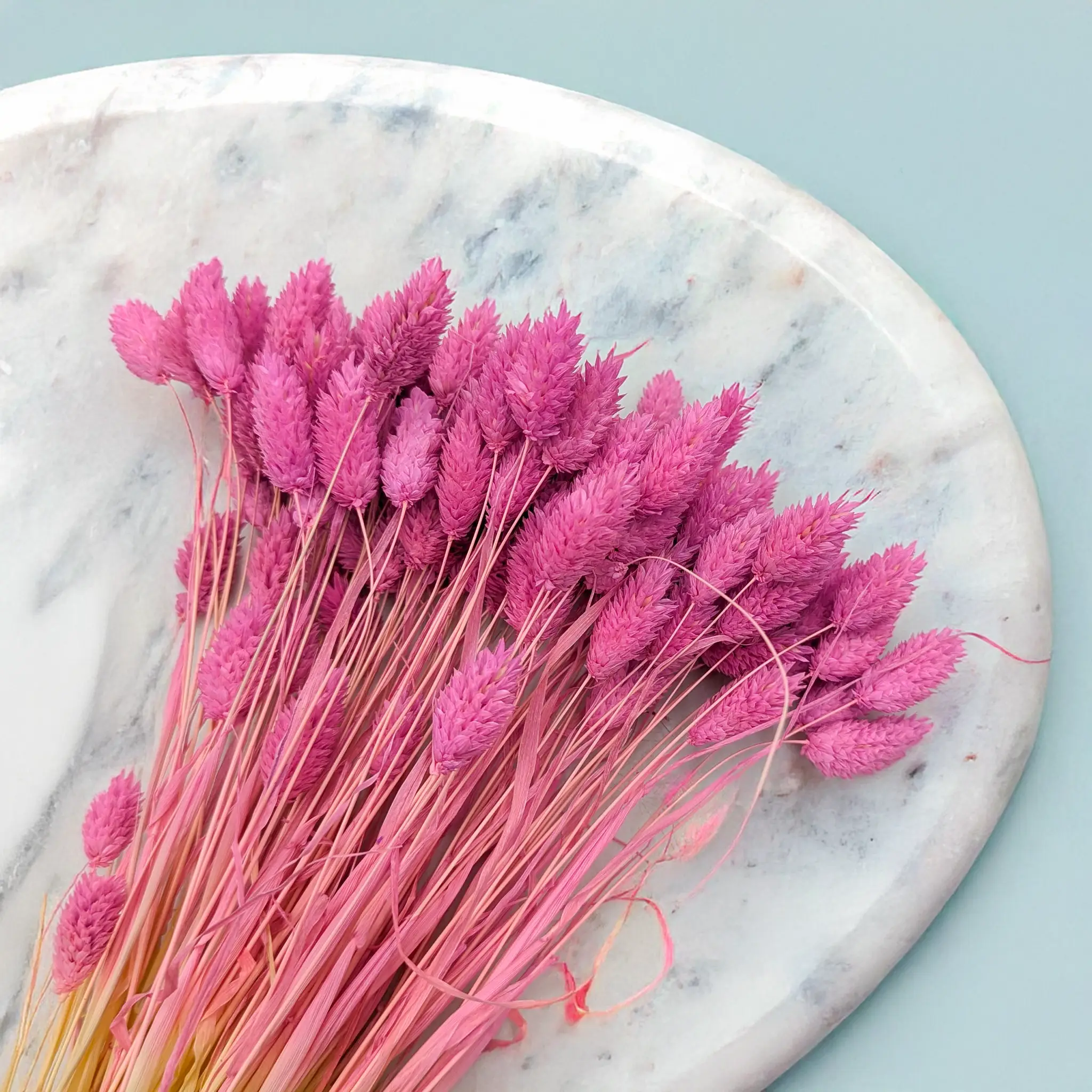 Suszony Phalaris (Mozga kanaryjska) w odcieniu Wrzosowego Pastelu to dekoracja o romantycznym, subtelnym wyrazie. Jego kolor – inspirowany kwitnącym wrzosem – łączy delikatne różowe i fioletowe tony w rozbielonej, pastelowej wersji. Dzięki swojej wyjątkowej barwie doskonale sprawdza się w kompozycjach boho, rustykalnych, ale też minimalistycznych.