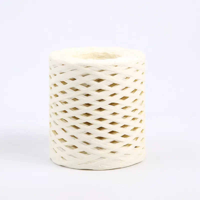Sznurek dekoracyjny – Syntetyczna Rafia – Beżowo-żółty – Rolka 180 m
