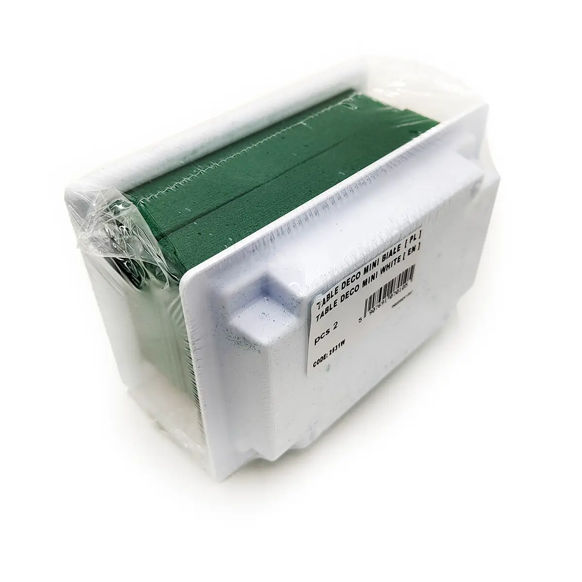 Gąbka florystyczna Table Deco MINI w kolorze białym to eleganckie i funkcjonalne rozwiązanie dla profesjonalnych florystów. Dzięki kompaktowym wymiarom i wbudowanej podstawce idealnie nadaje się do tworzenia niewielkich aranżacji kwiatowych, zwłaszcza stołowych – na przyjęciach, weselach, komuniach czy eventach firmowych.