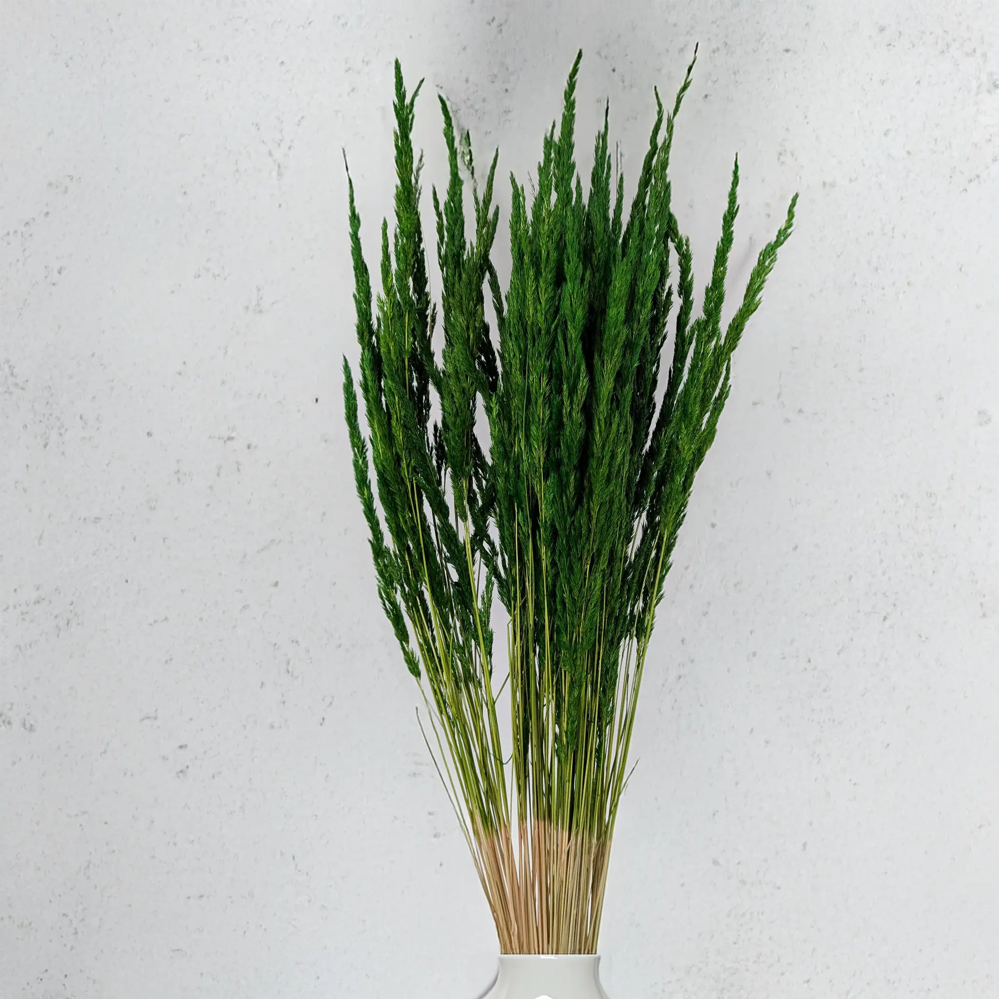 Trzcinnik piaskowy (Calamagrostis epigejos) w kolorze butelkowej zieleni to wyjątkowa suszona trawa ozdobna o eleganckim, głębokim odcieniu inspirowanym naturą. Ta intensywna barwa wprowadza do kompozycji florystycznych spokój, harmonię i odrobinę luksusu. Idealny wybór do dekoracji wnętrz w stylu boho, japandi, scandi oraz do kompozycji jesiennych i zimowych.