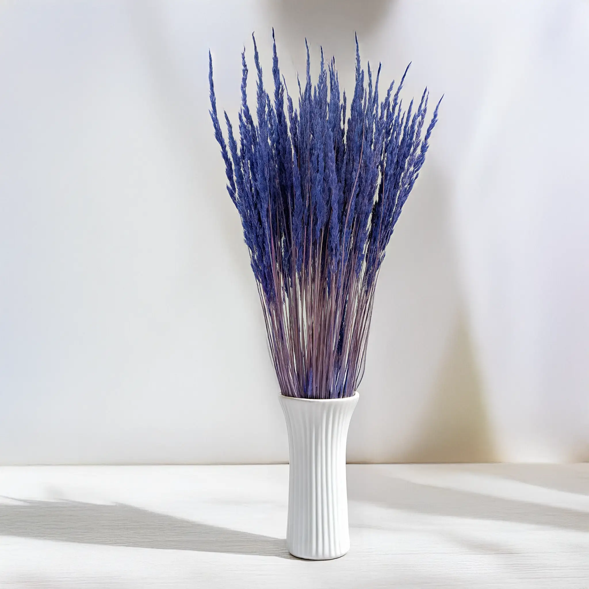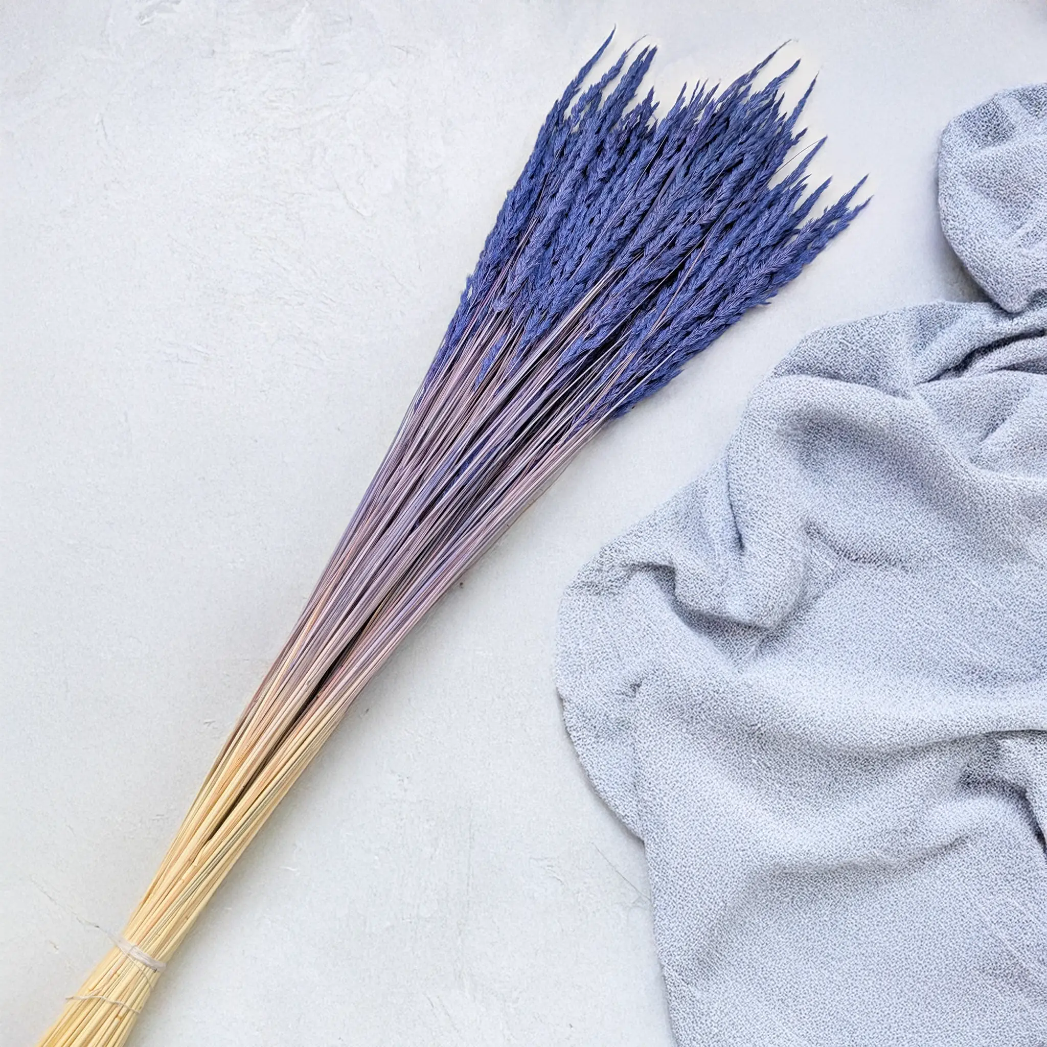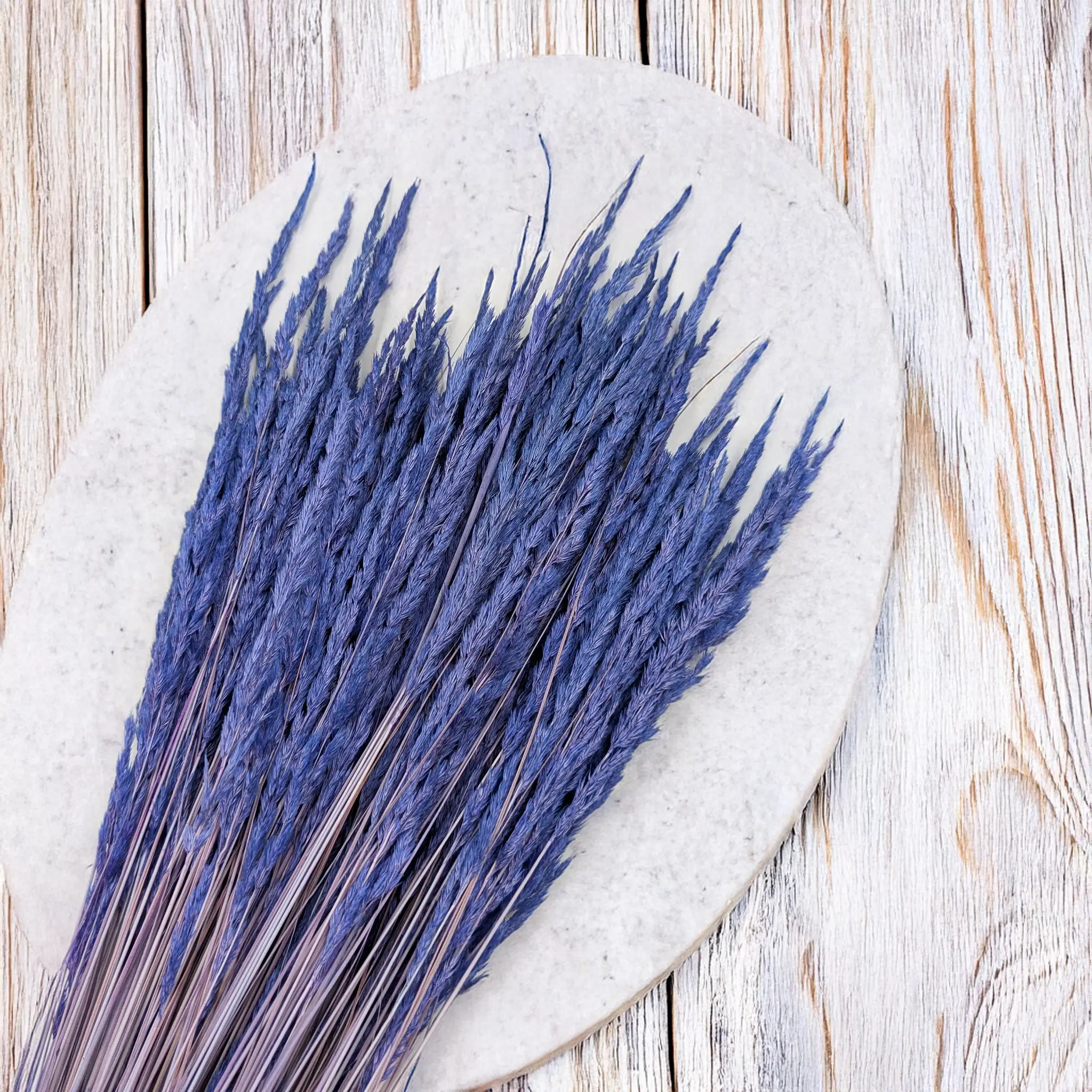 Granatowy trzcinnik to trwała i efektowna trawa ozdobna o delikatnych, lekko puszystych kłosach. Dzięki procesowi suszenia zachowuje swój kształt i kolor przez długi czas, stanowiąc doskonałą alternatywę dla świeżych dekoracji. Idealnie łączy się ze złotem, bielą, beżem lub srebrem, dodając kompozycjom głębi i nowoczesnego stylu.