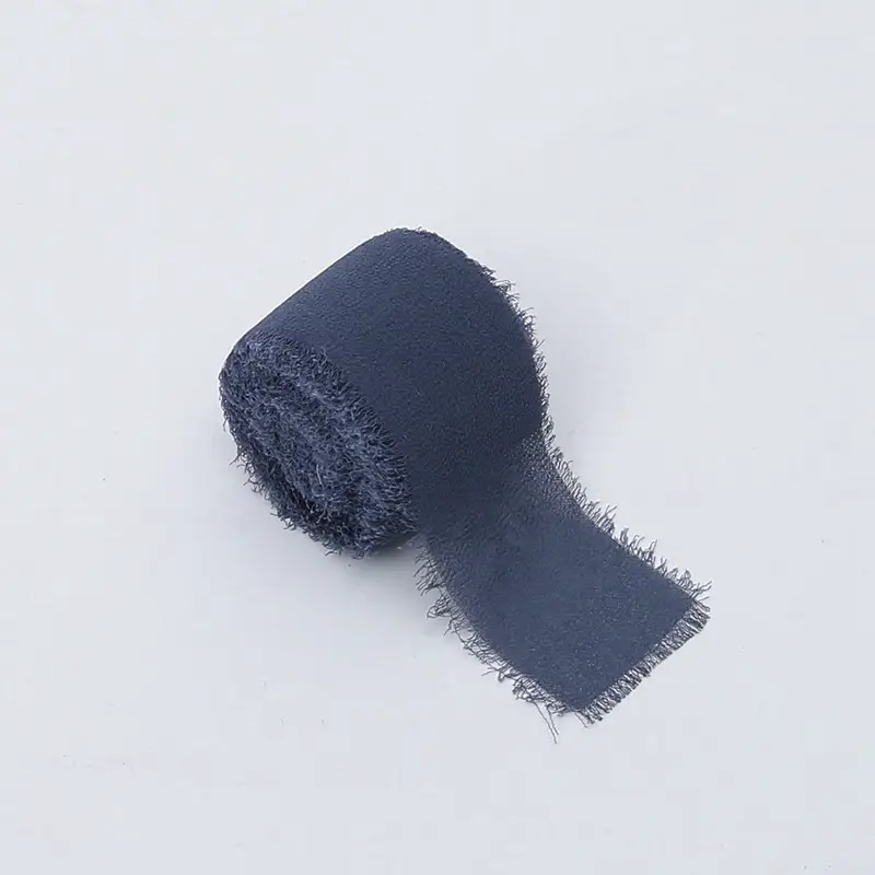 Delikatnie postrzępione brzegi i zwiewna faktura szyfonu doskonale wpisują się w stylistykę elegancką, nowoczesną, boho oraz slow wedding. Granat pięknie komponuje się z bielą, kremami, jasnymi szarościami, złotymi akcentami, zielenią eukaliptusa oraz suszonymi roślinami.