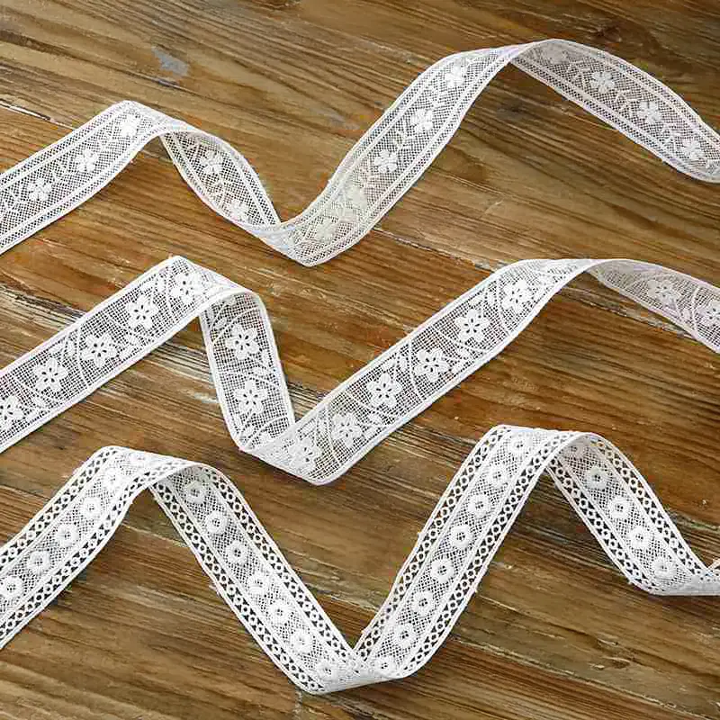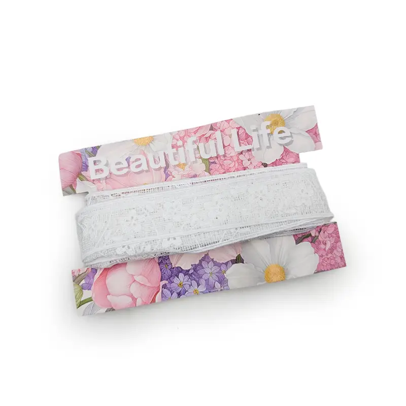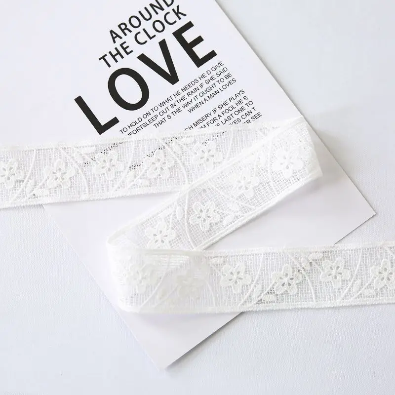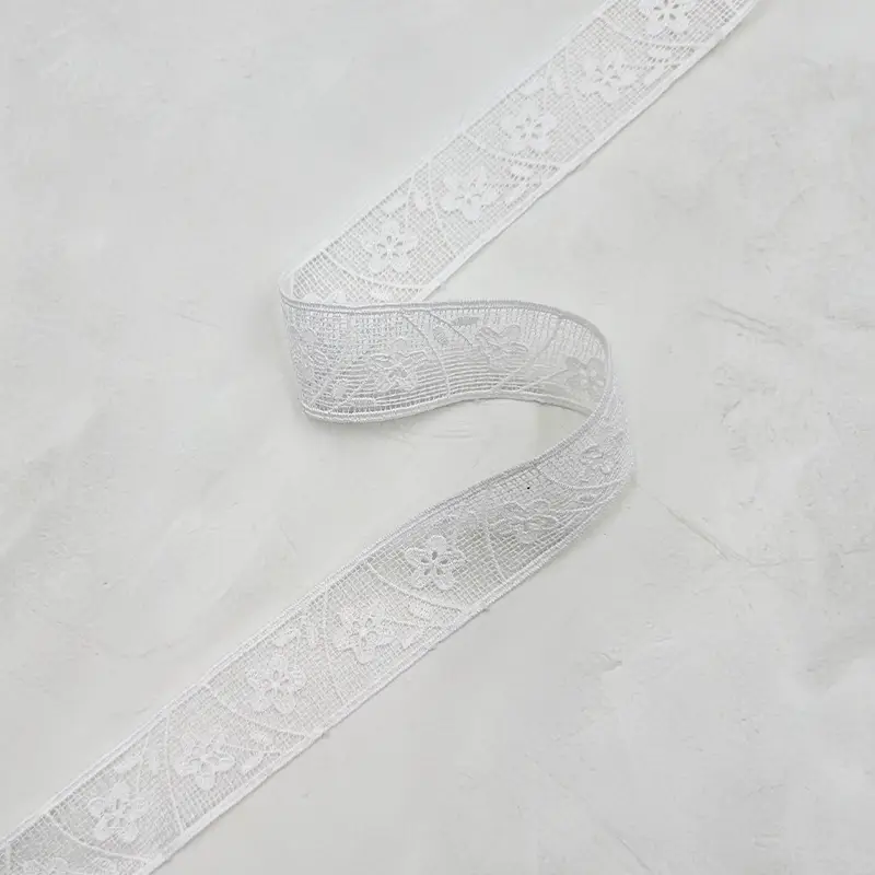 Wstążka koronkowa „Kwiat z Gałązką” to elegancki i subtelny dodatek dekoracyjny z delikatnym, florystycznym wzorem. Jej biały haft przedstawia drobne kwiaty połączone cienkimi, wijącymi się gałązkami – tworząc harmonijny motyw idealny do romantycznych aranżacji ślubnych, pakowania prezentów czy projektów DIY.