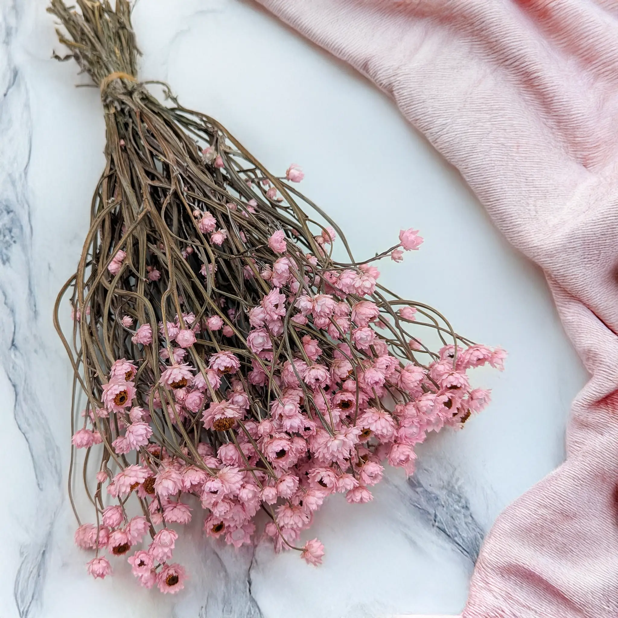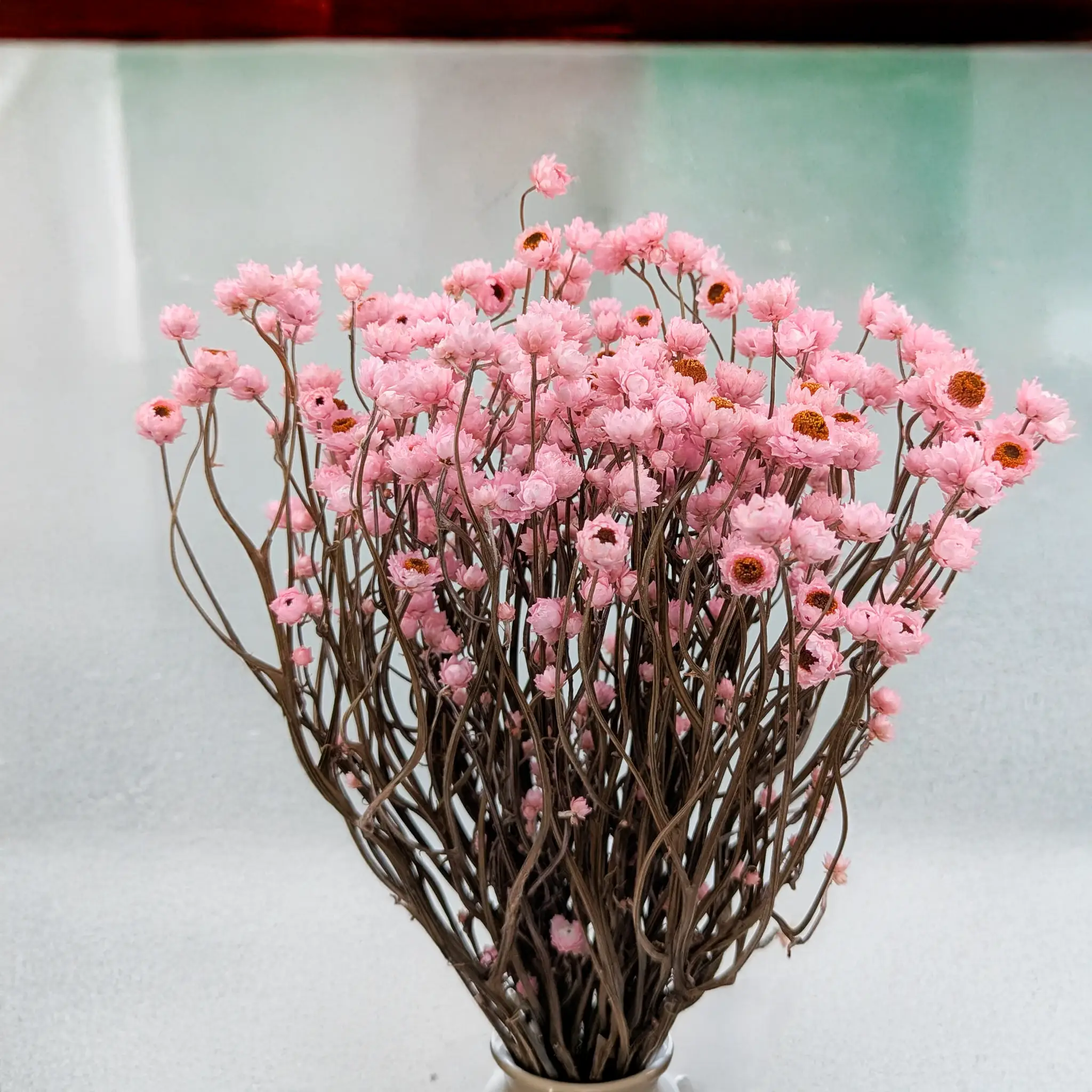 Złociszek w odcieniu jasnego różu to wyjątkowa wersja PREMIUM dekoracyjnej wiekuistki Ammobium alatum, która zachwyca swoją lekkością i romantycznym kolorem. Dzięki procesowi barwienia oraz delikatnemu suszeniu, zachowuje formę i subtelną fakturę drobnych, papierowych kwiatów, dodając aranżacjom niepowtarzalnego charakteru.