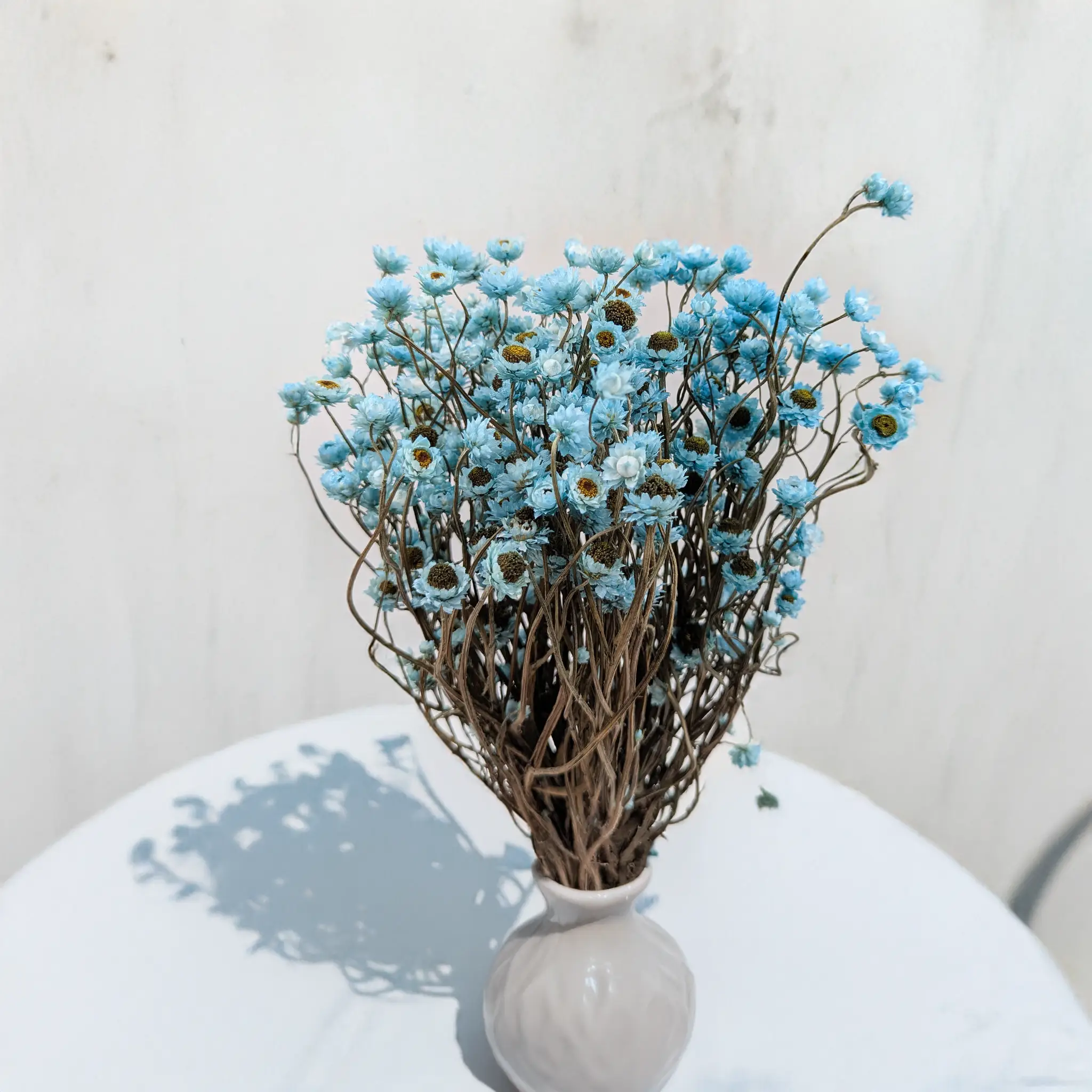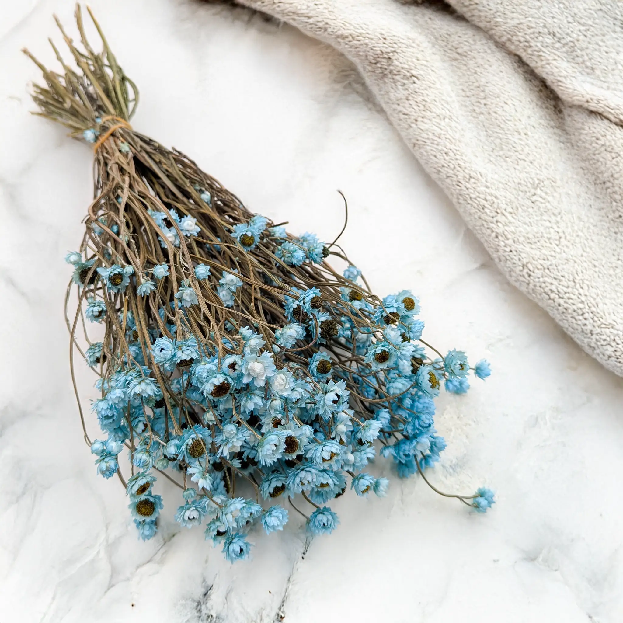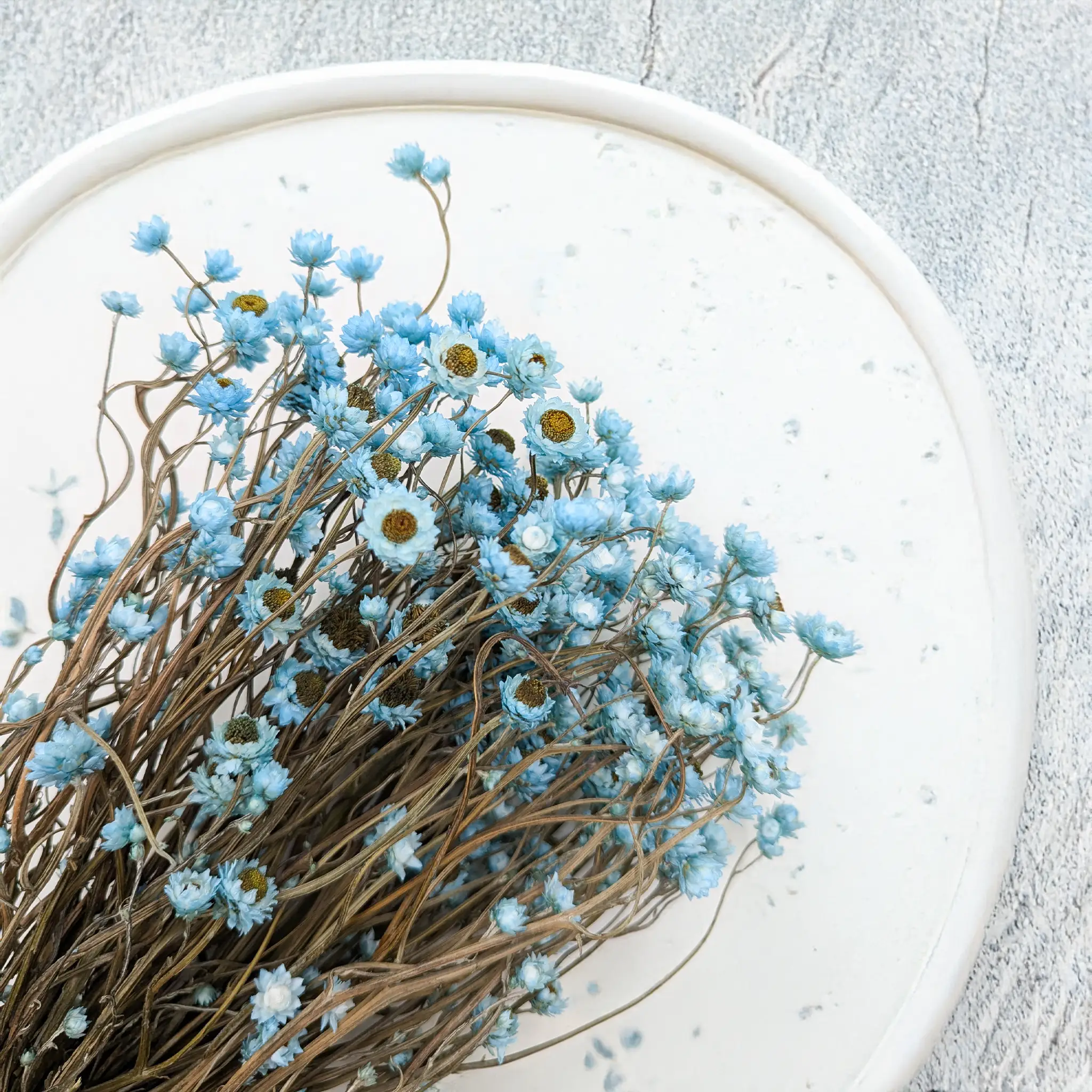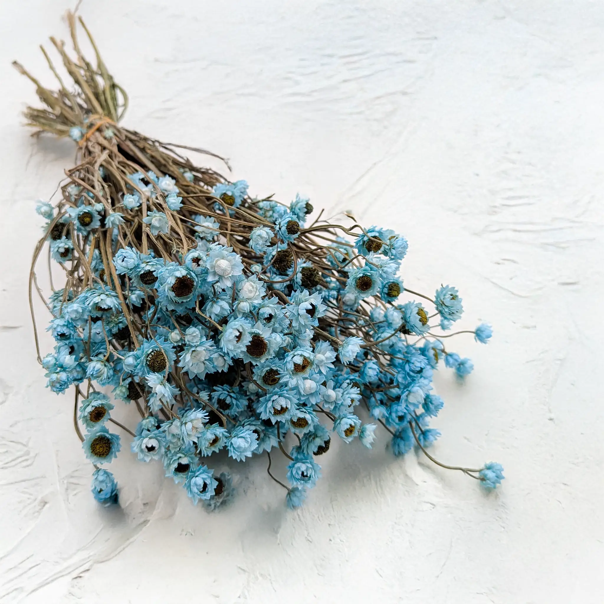 Złociszek w odcieniu lazurowym to wyjątkowa wersja PREMIUM dekoracyjnej wiekuistki Ammobium alatum. Niezwykle świeży i pełen życia kolor przywodzi na myśl błękit nieba i spokojne morskie fale. Dzięki starannemu procesowi barwienia oraz naturalnemu suszeniu, kwiaty zachowują swój kształt i delikatną fakturę, nadając kompozycjom niepowtarzalnej lekkości.